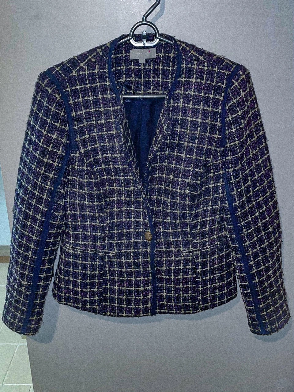Purple & white boucle blazer jacket