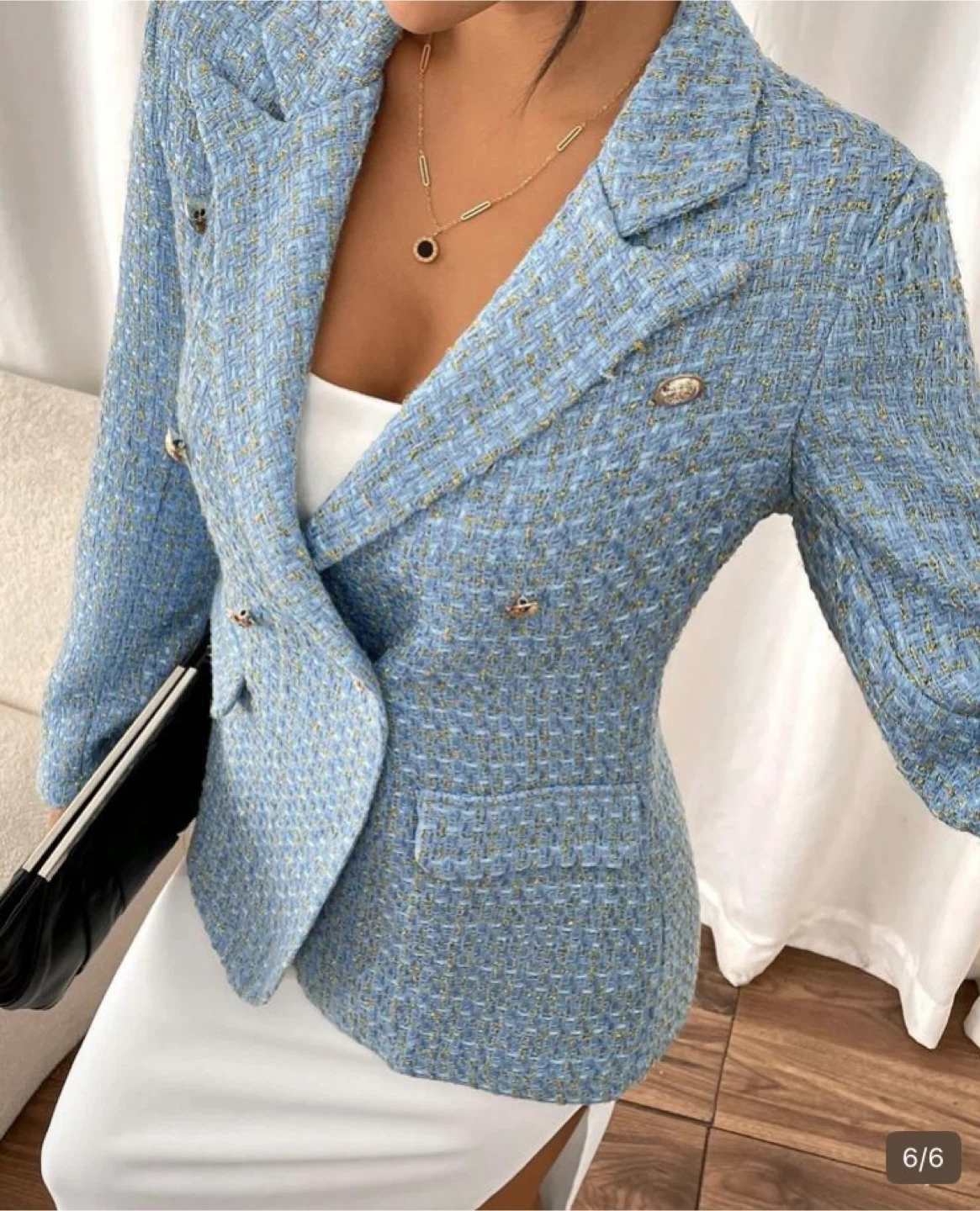 Beautiful ice blue blazer with gold metallic buttons