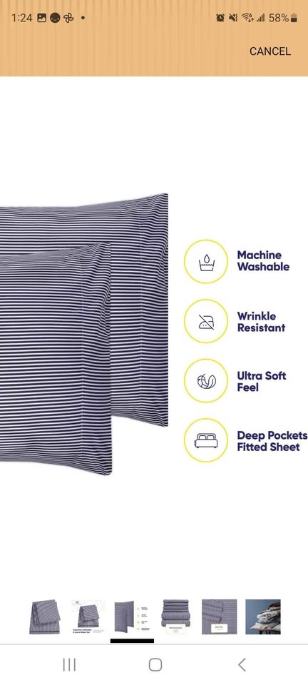 Brand new Sweet Home Collection queen sheet set. This is a 6-piece classic navy and white stripe pattern. Has 1500 thread count fine microfiber material. Comes with 1 flat sheet, 1 fitted sheet, and 4 pillowcases. Deep pockets for oversized mattresses. Machine washable, wrinkle resistant, and ultra soft feel. Regular Price: $42.99. Pick up in lobby near Yonge and Sheppard. Cash only.
