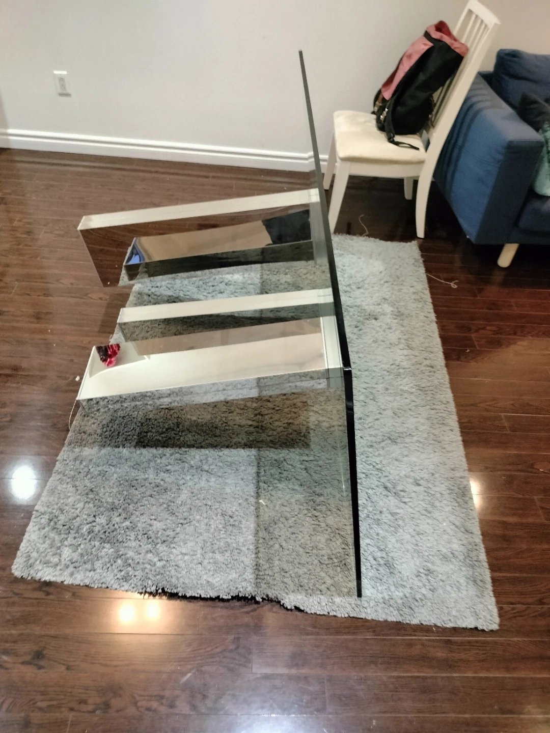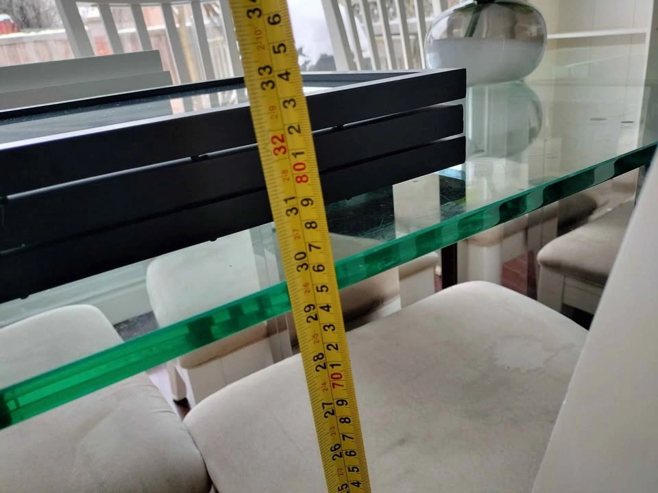 Glass Dining Table, 180cm x 90cm x 75cm (LxWxH) with 5 dining chairs, perfect for your home. Pick up at 7pm on weekdays and 10am to 5pm on weekends. It is available if the ad is still up. Thornhill, major intersection between Bathurst and Clark.
