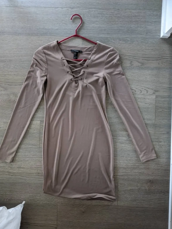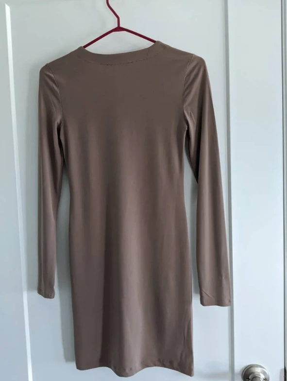 New, never worn espresso/ashy brown Criss-Cross Long-Sleeve Bodycon Dress in size small. I originally bought this from Forever 21.