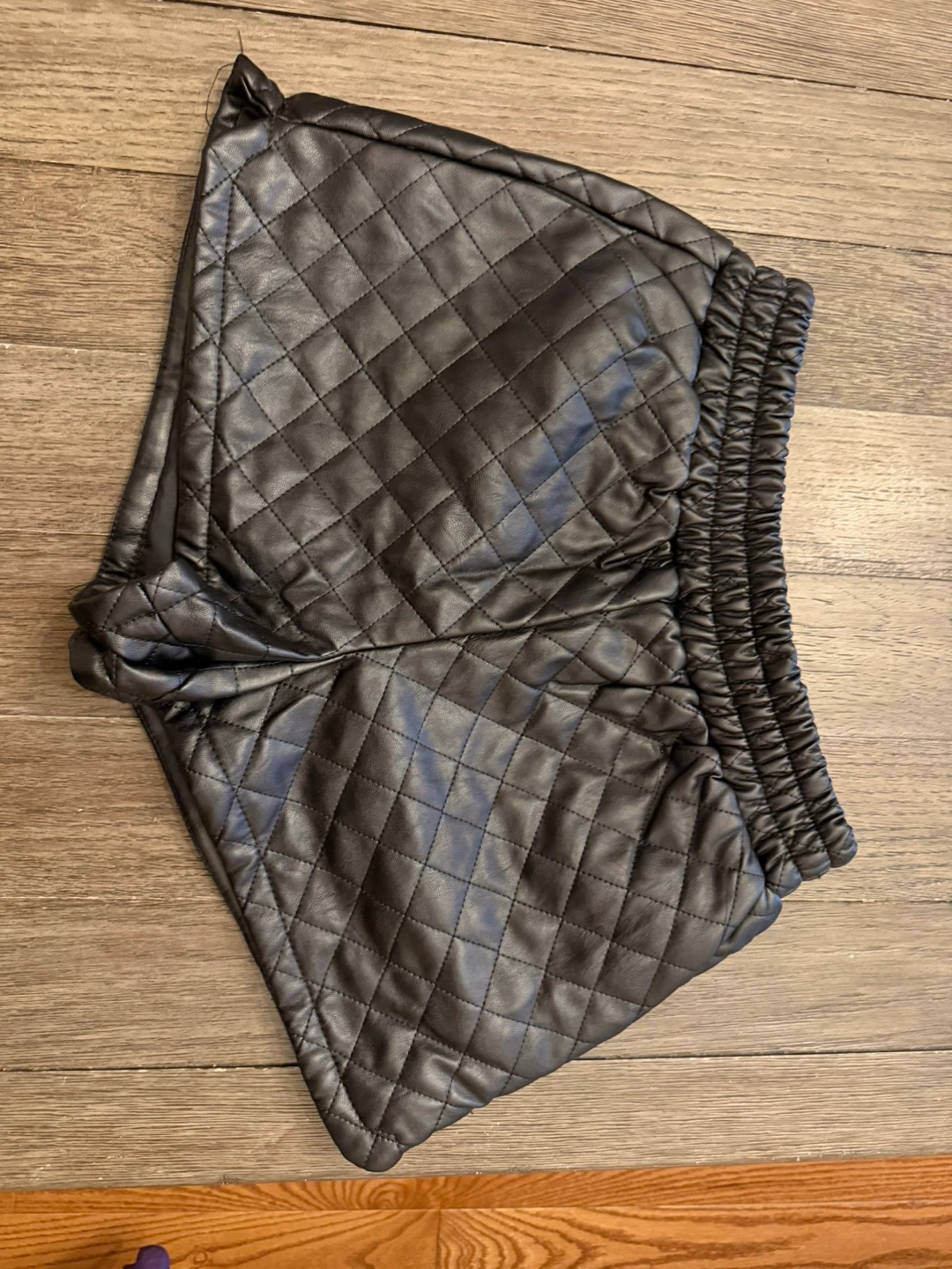 Cute Forever 21 black quilted shorts in size small! The material has a faux leather look and feel. Perfect for a night out or just lounging around