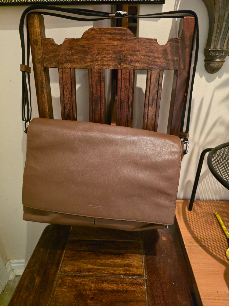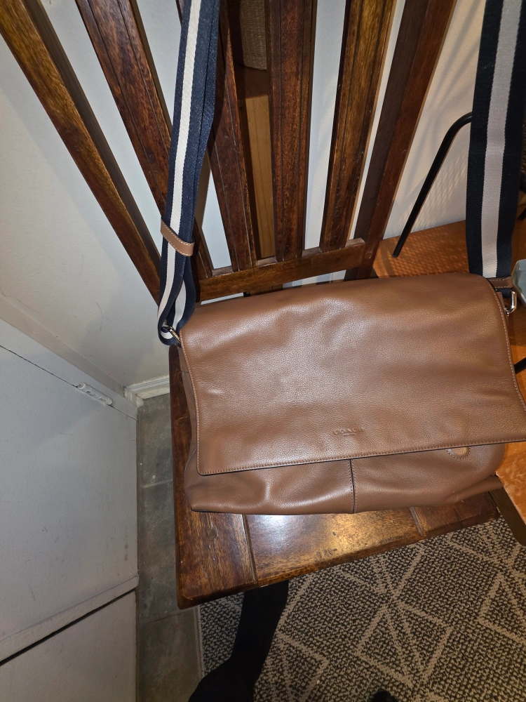 Selling a Coach leather messenger bag in brown only used a few times. It's in great shape no scratches and ready for a new home! The bag features a spacious interior with a zipper pocket for secure storage. The adjustable strap makes it comfortable to carry. Perfect for work or everyday use!