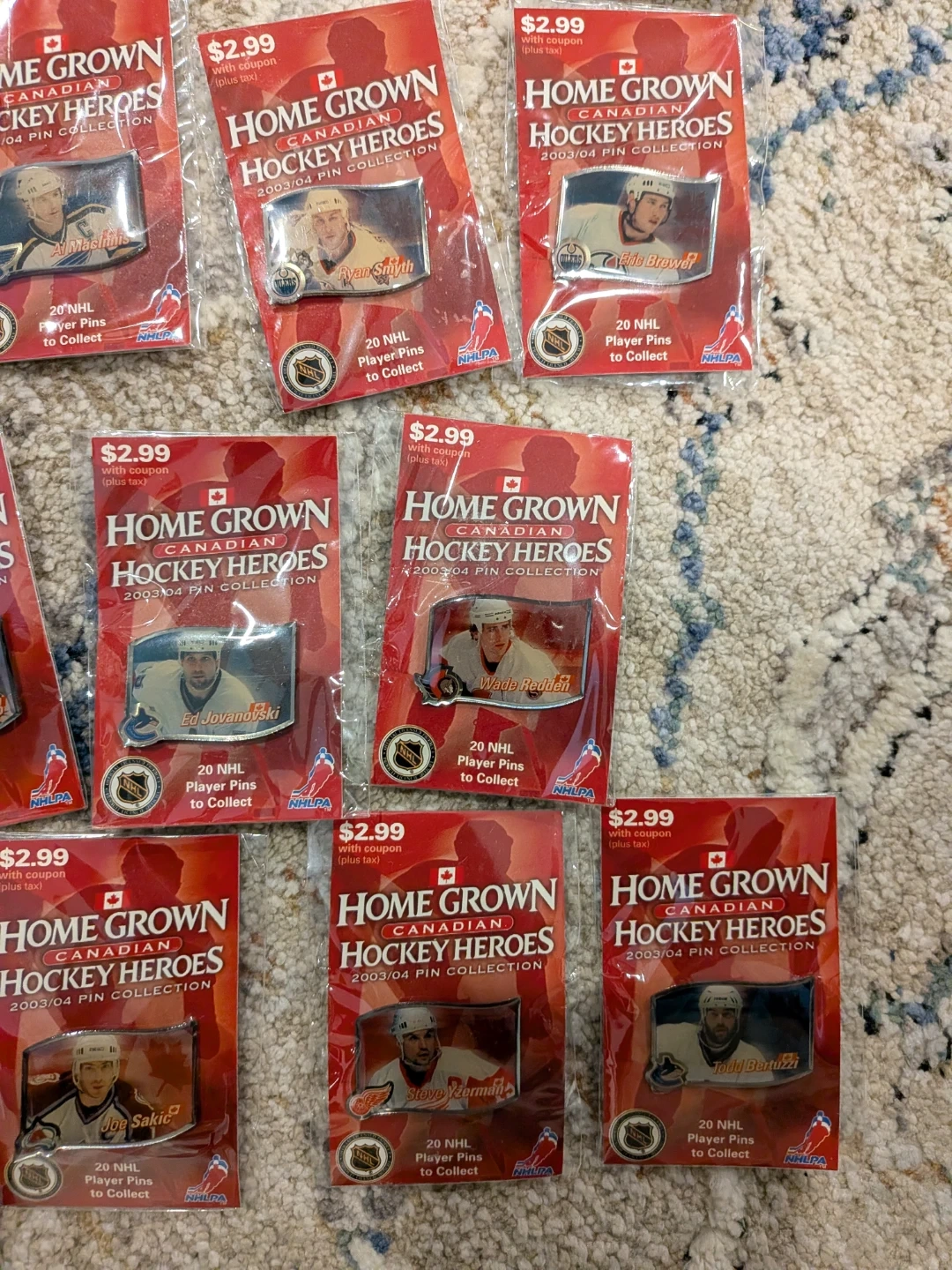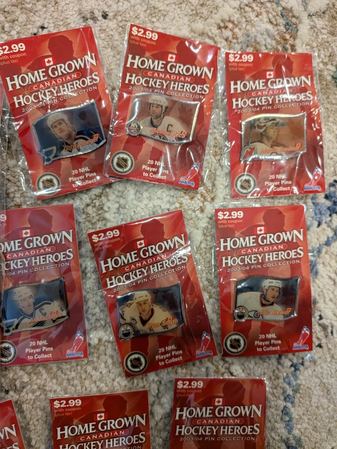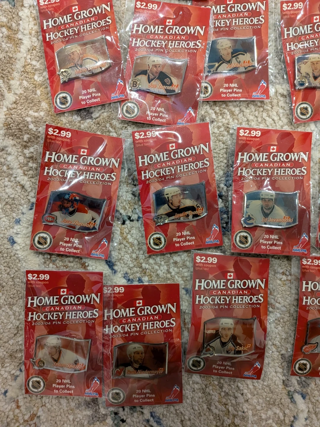 Selling Home Grown Canadian Hockey Heroes 2003/04 Pin Collection pins. They come with a coupon and were originally $2.99 plus tax.