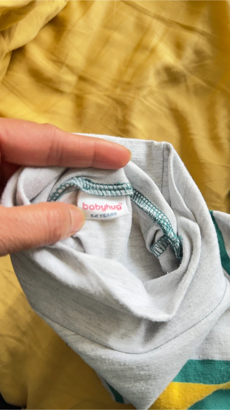 This Babyhug turtleneck shirt is designed for kids aged 5-6 years, fits better for 4.5-5.5yrs.It's made from a cotton blend for comfort. Features colourful stripes in green, yellow, and white.