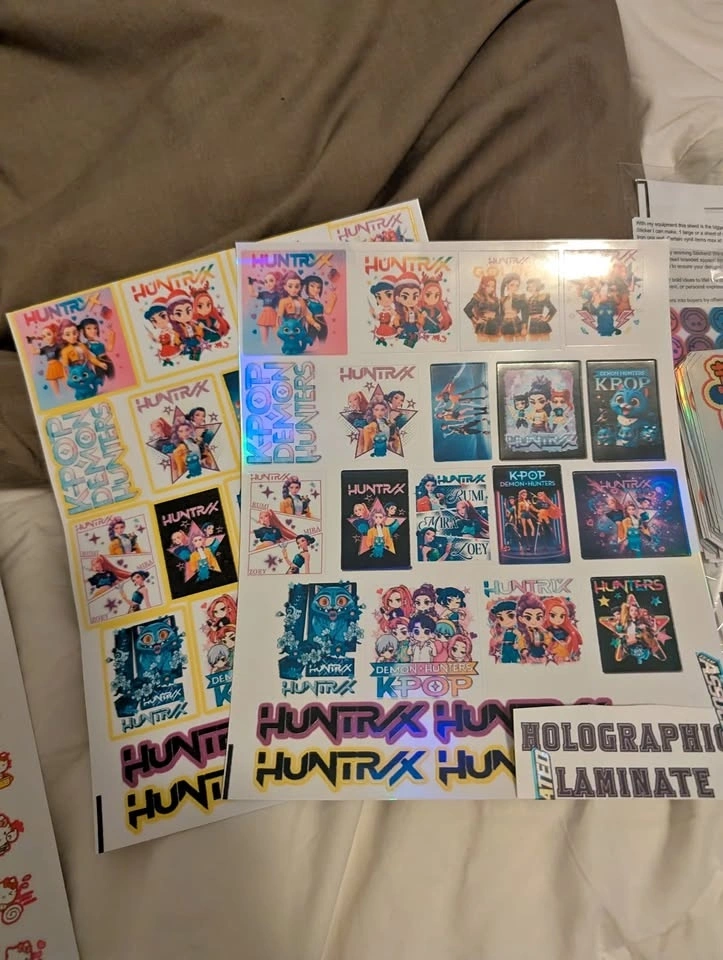 Get ready to rock with these high-quality, aftermarket sticker sheets inspired by the hit animated film, KPop Demon Hunters! Featuring designs based on the members of the girl group HUNTR/X and rival boy band Saja Boys, these decals let fans show their appreciation with flair.