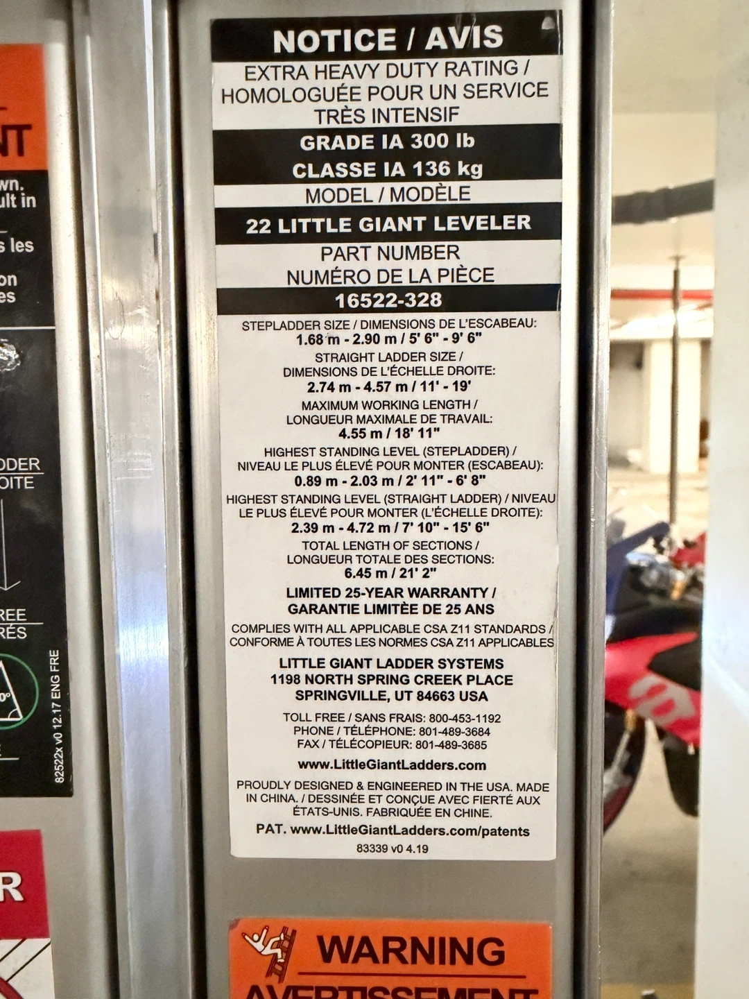 This Little Giant Leveller ladder is designed for extra heavy duty use. It has a 300 lb weight rating. The stepladder size ranges from 5' to 9', and the straight ladder size ranges from 11' to 19'. It offers a maximum working length of 16'.