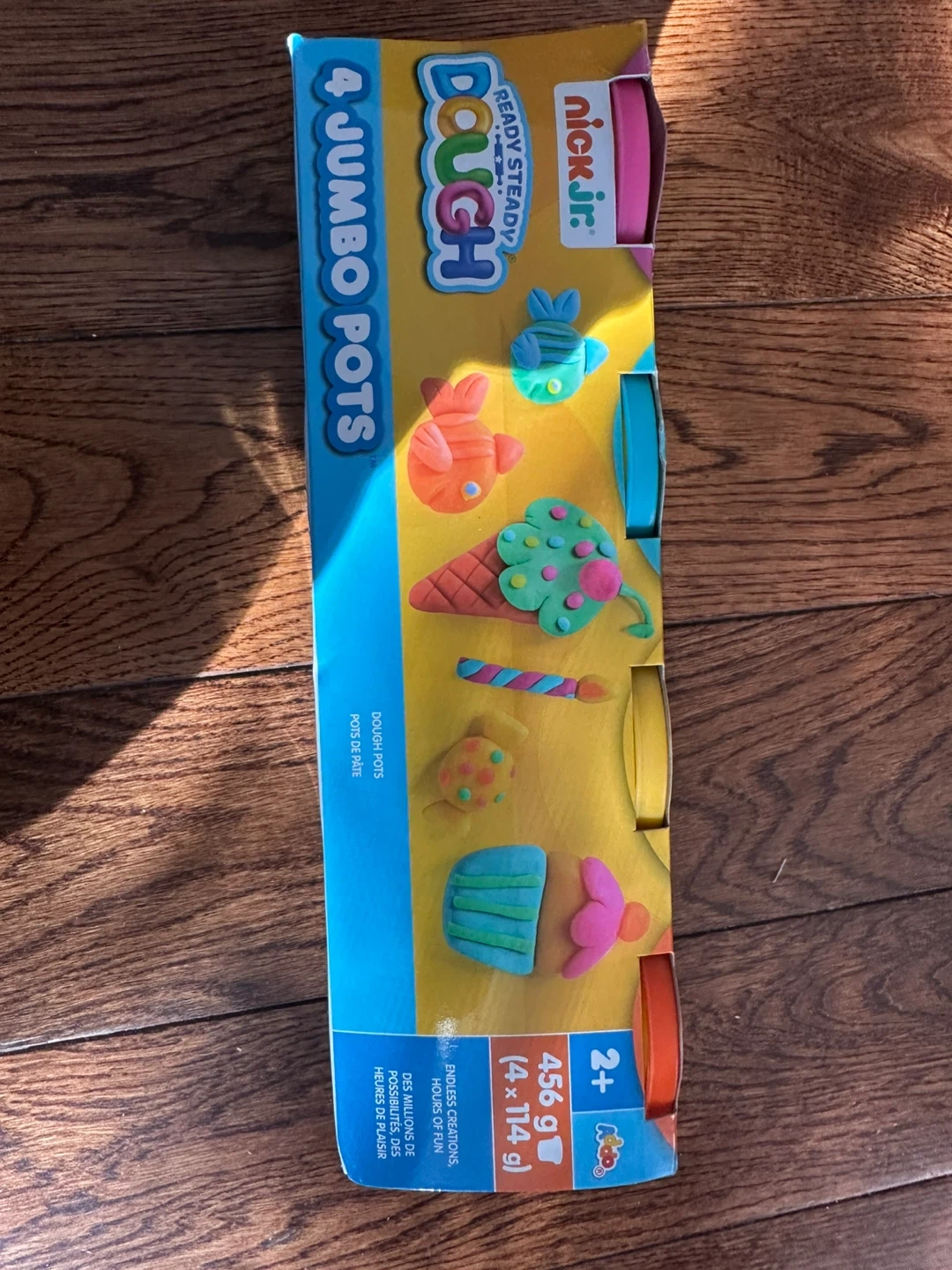 This set includes 4 jumbo pots of Nick Jr. Ready Steady Dough. It contains 456g (4 x 114g) of colourful dough. Recommended for ages 2 and up.