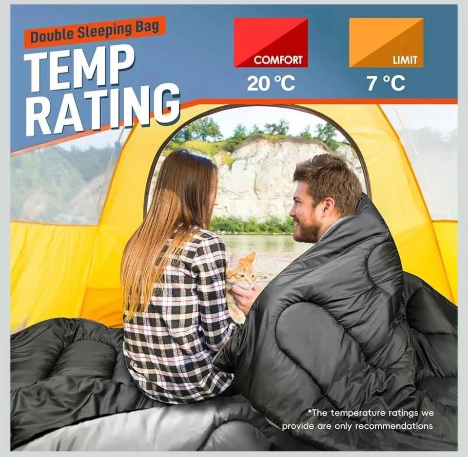 MEREZA Double Sleeping Bag for Adults, Queen Size. Suitable for all seasons, camping, hiking, and backpacking. Warm for cold weather. Does not come with a pillow. Pet-free and smoke-free home.