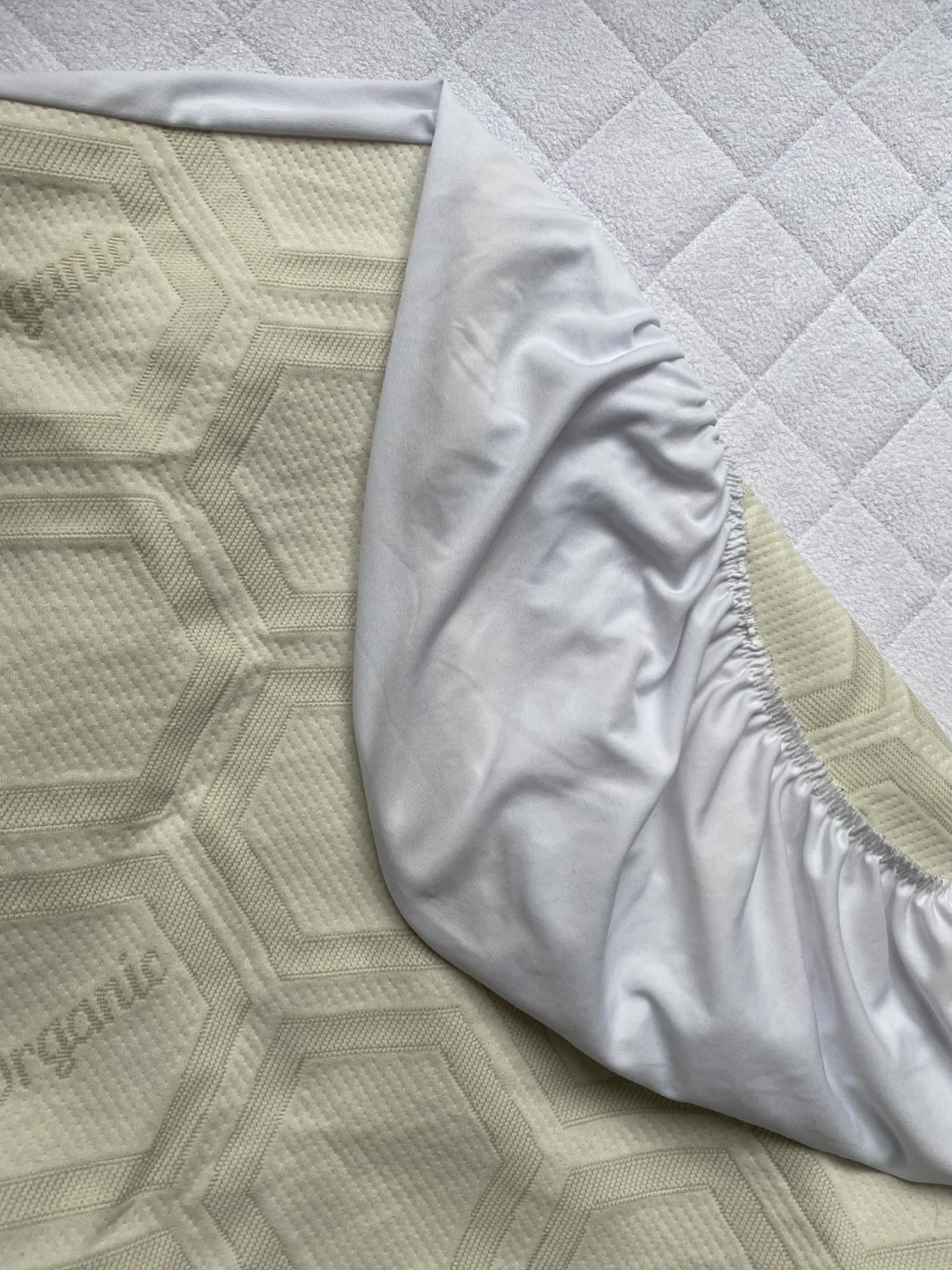 First two images is a BabyWorks quilted mattress protector