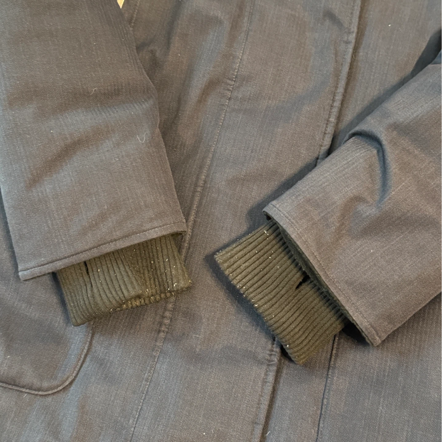 elastic rib cuffs with thumb-hole openings