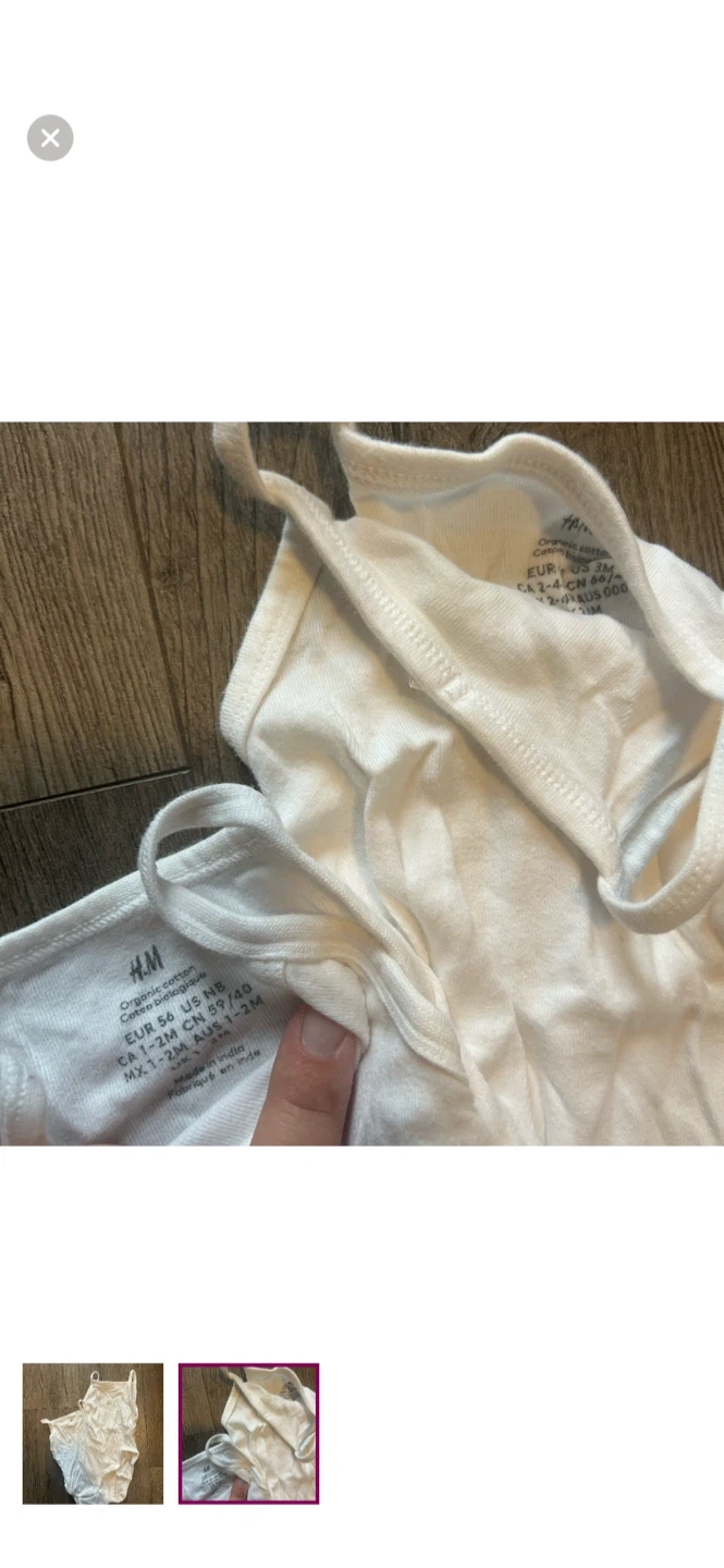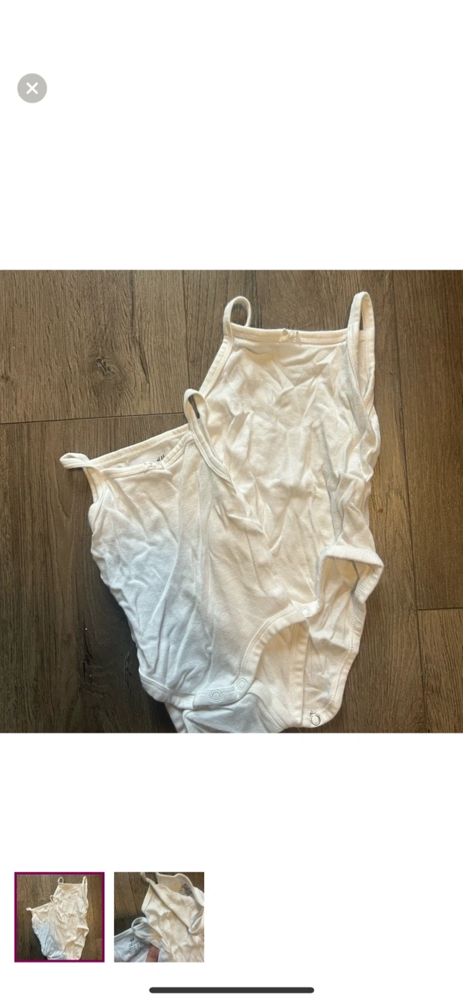 H&M brand. White tank top onesies. One size 1/2m and one size 2/4m. Both brand new condition