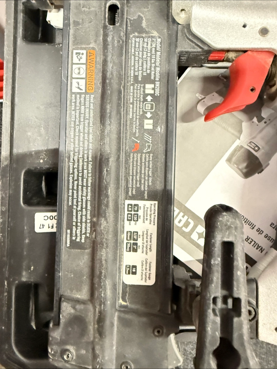 Selling a Porter Cable brad nailer. It comes with its original case and some accessories. The model number is BN200C. Ready to go for your next project!