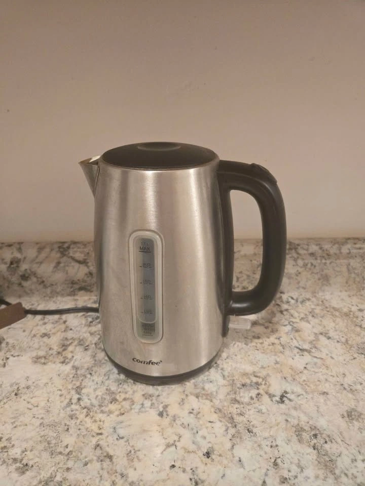Fast-boiling electric kettle, perfect for tea, coffee, or hot water.