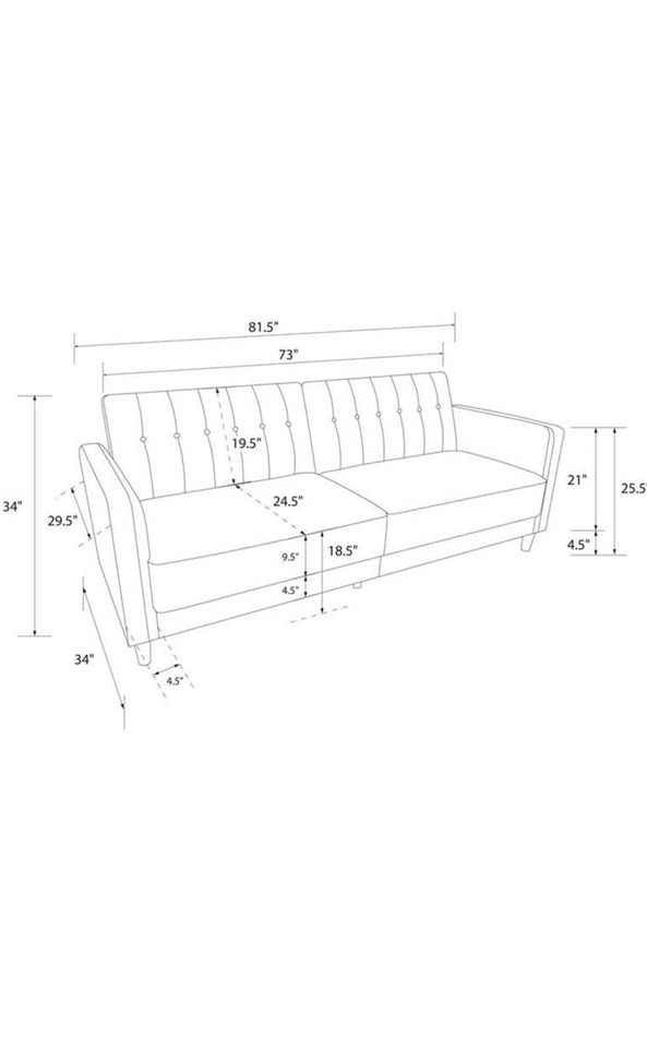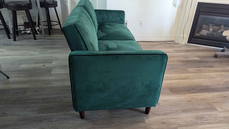 DPH branded Pin Tufted Transitional Futon in Green Velvet. Used for one year. It folds into a bed. Original price was $689.99 from Amazon. Selling because I had to move to a smaller place. It's been very well maintained. Dimensions are in the pictures.