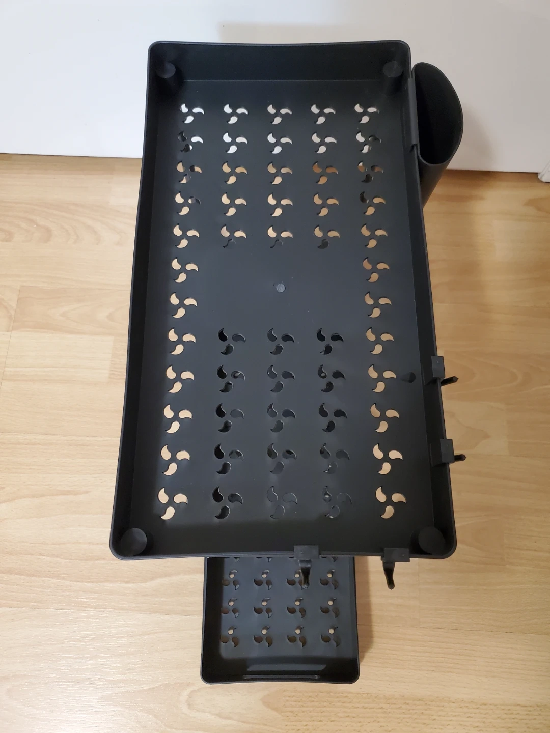 Brand new, never used. This plastic organizer features two tiers and a slide-out drawer for easy access to your cleaning supplies and other essentials. It's a practical solution for maximizing storage space in your bathroom or kitchen. 15 x 8 x 13 inches.