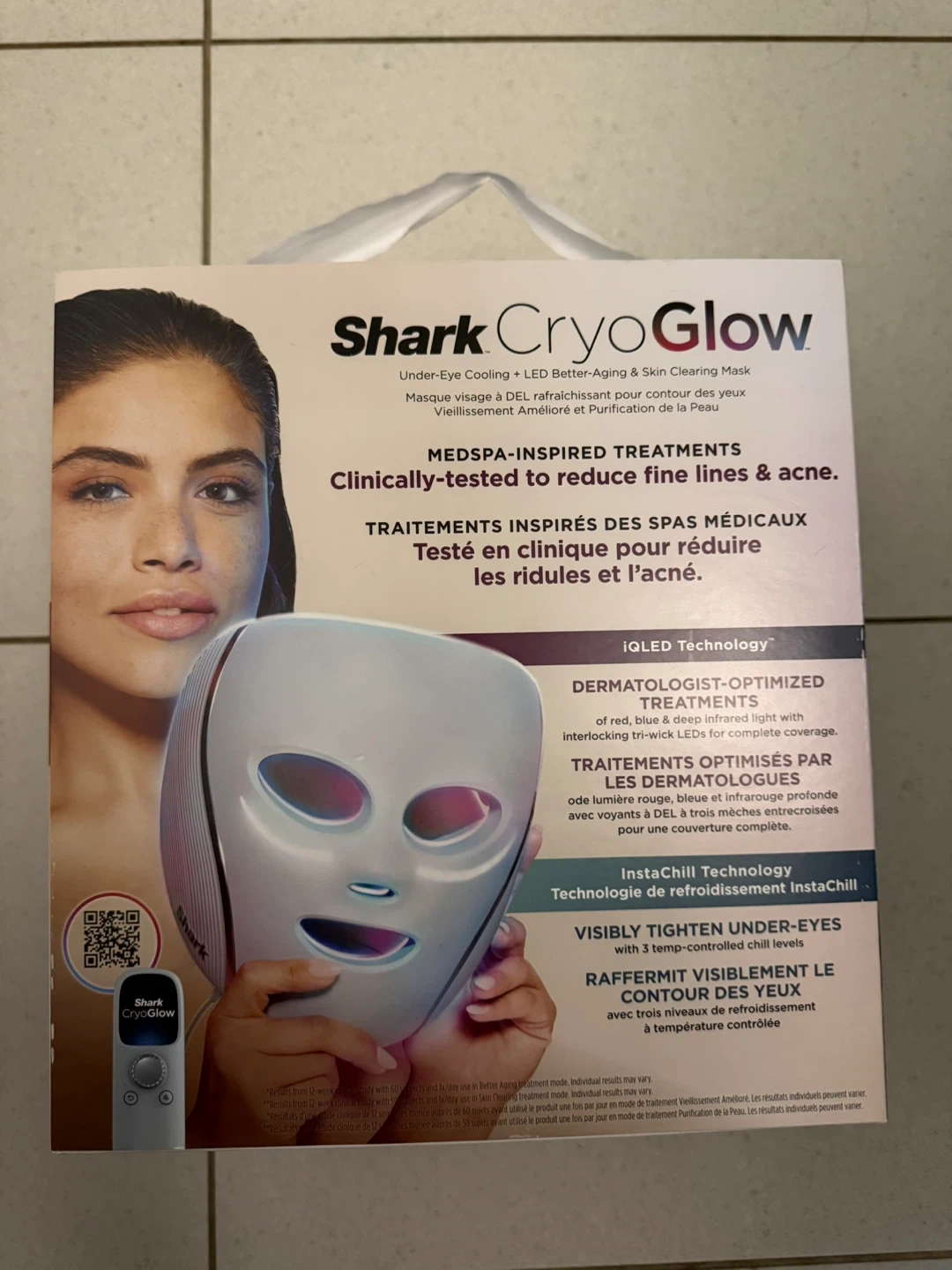 10I'm selling a Shark CryoGlow Under-Eye Cooling + LED Skin Clearing Mask. New in box! Retail $499. Looking for $400 or best offer. It's designed for under-eye cooling and skin clearing with LED technology. It features MEDSPA-inspired treatments that are clinically tested to reduce fine lines and acne. The InstaChill Technology visibly tightens under-eyes with 3 temperature-controlled chill levels. Get dermatologist-optimized treatments with IQLED Technology, offering red, blue, and deep infrared light with interlocking precision for complete coverage