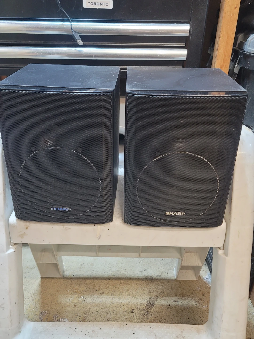 10Selling a pair of Sharp speakers! They are model CP-DH259N. Each speaker has a woofer of 4-3/4" (12 cm) and a tweeter of 2" (5 cm). The rated power is 80W, and the maximum power handling capacity is 160W Pick up is Upper Stoney Creek L8J1J2 Text 416-565-2581 for quick reply