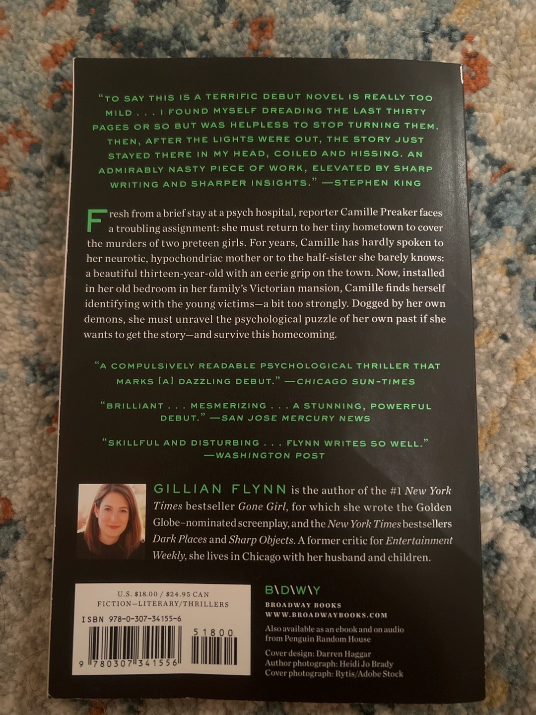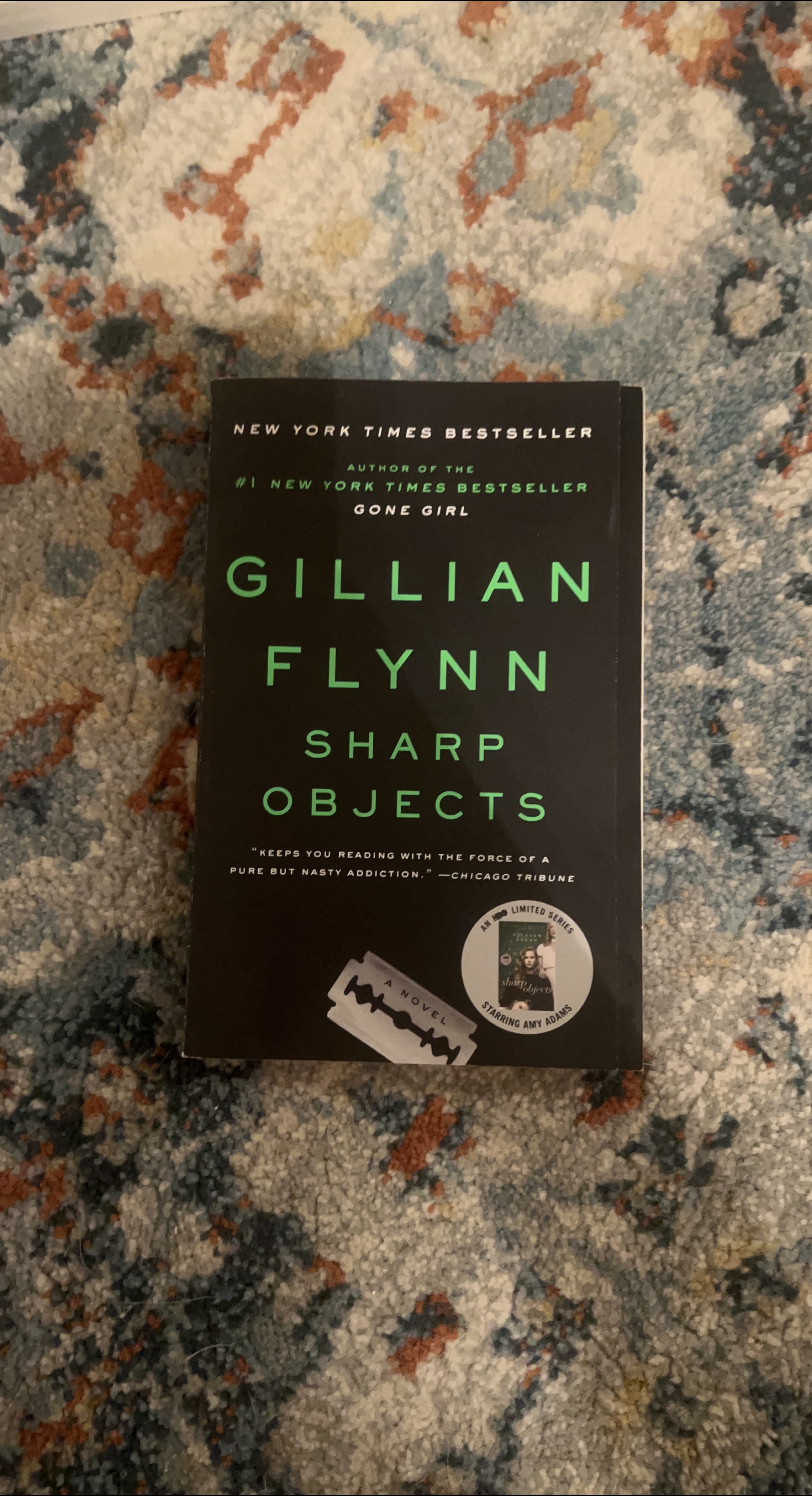 Selling the book Sharp Objects by Gillian Flynn! It's a New York Times Bestseller and a gripping novel. The book is part of a limited series starring Amy Adams. It's a thrilling read!
