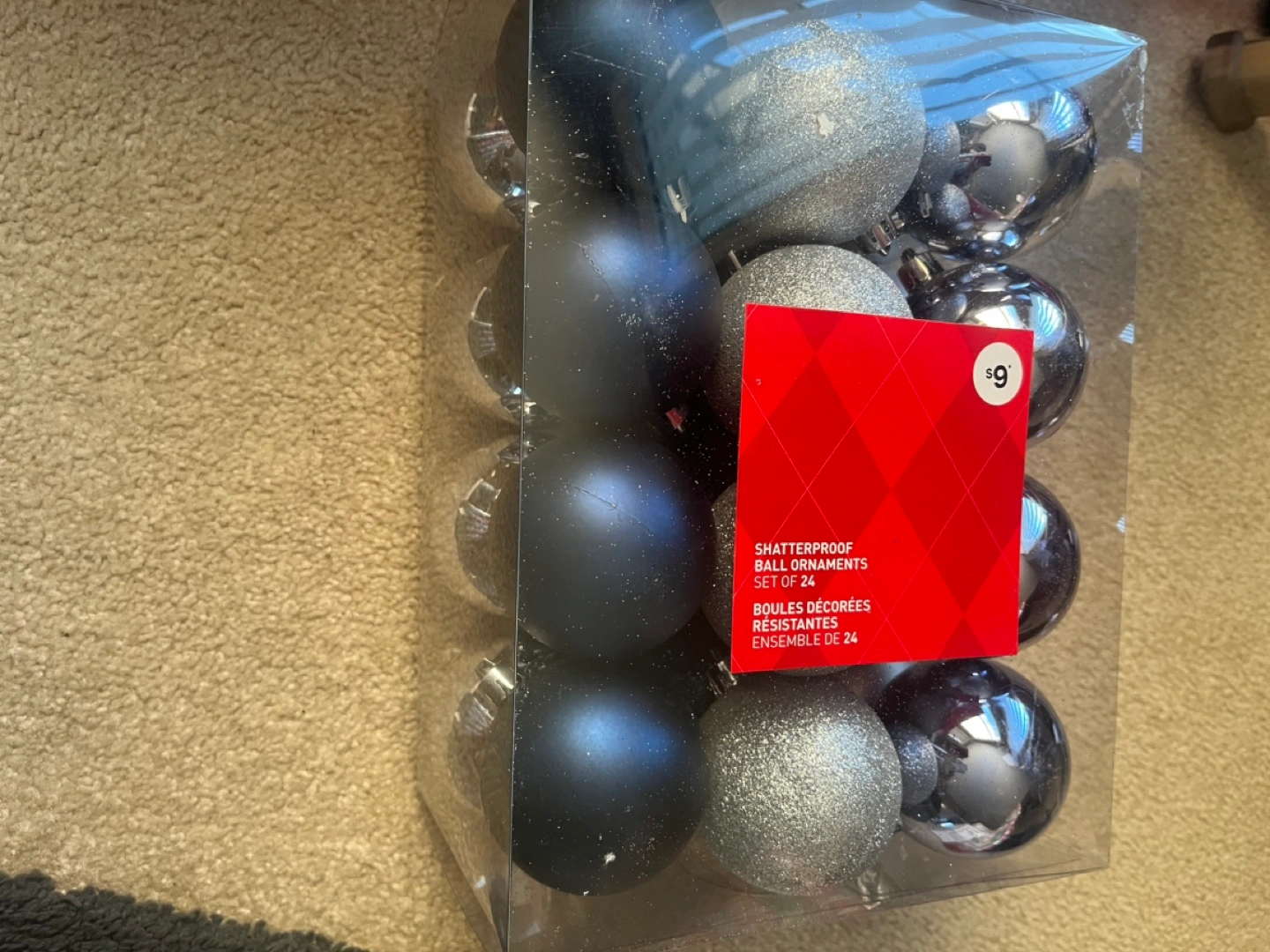 165Set of 24 shatterproof Christmas ornaments. Includes silver and blue ornaments.