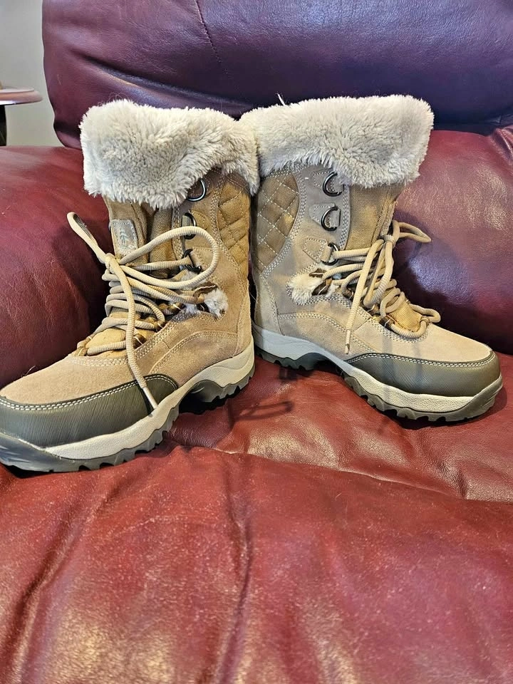 New winter boots, worn maybe twice and put in the closet. Pet friendly home but boots have been cleaned and put away. Pick up in Niverville.