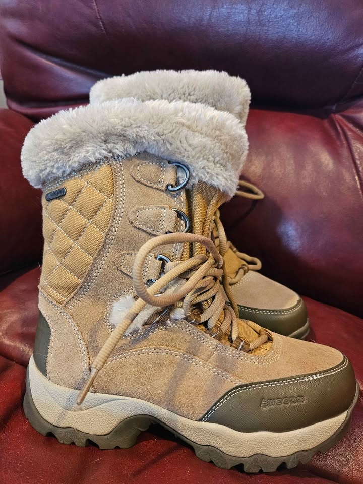 New winter boots, worn maybe twice and put in the closet. Pet friendly home but boots have been cleaned and put away. Pick up in Niverville.
