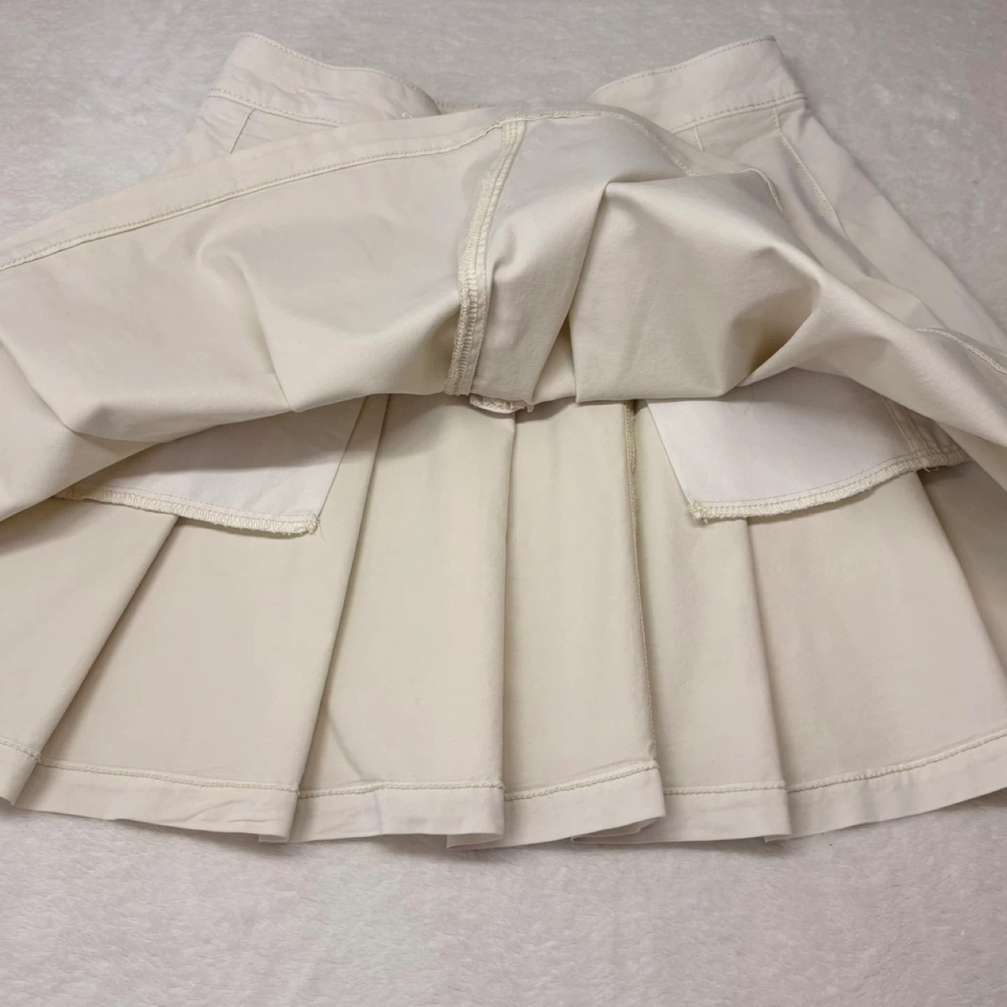 skirt, mini, pleated, cream, ivory, american eagle, pockets, casual, preppy, tennis