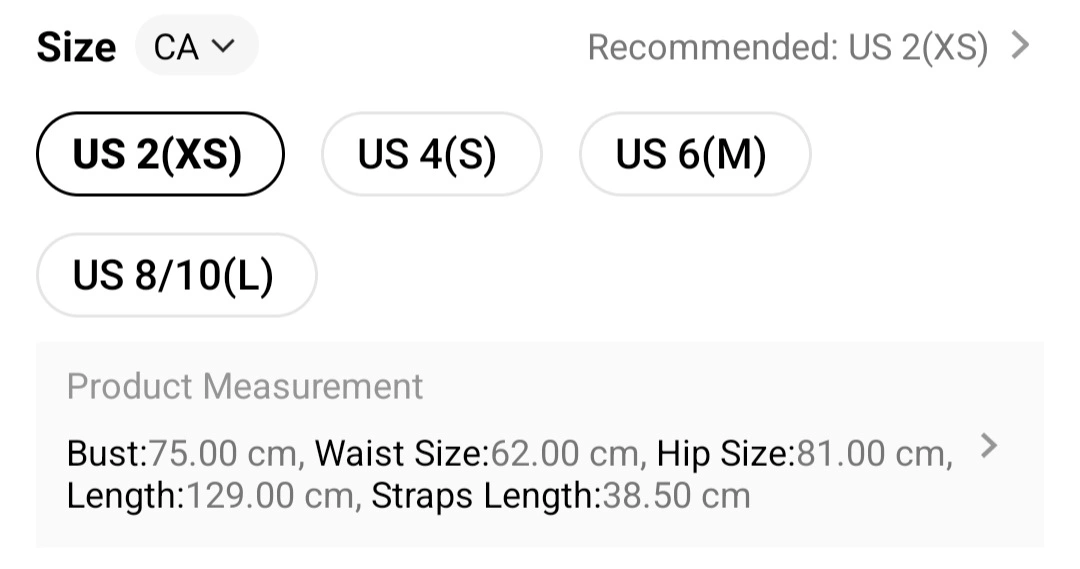 - SizeUS 2 (xs)