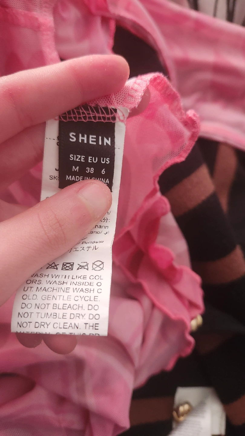 5Selling a cute Shein pink floral mesh top in size medium! It's in great condition and perfect for layering or wearing on its own. The material is lightweight and breathable, making it super comfy for warmer weather