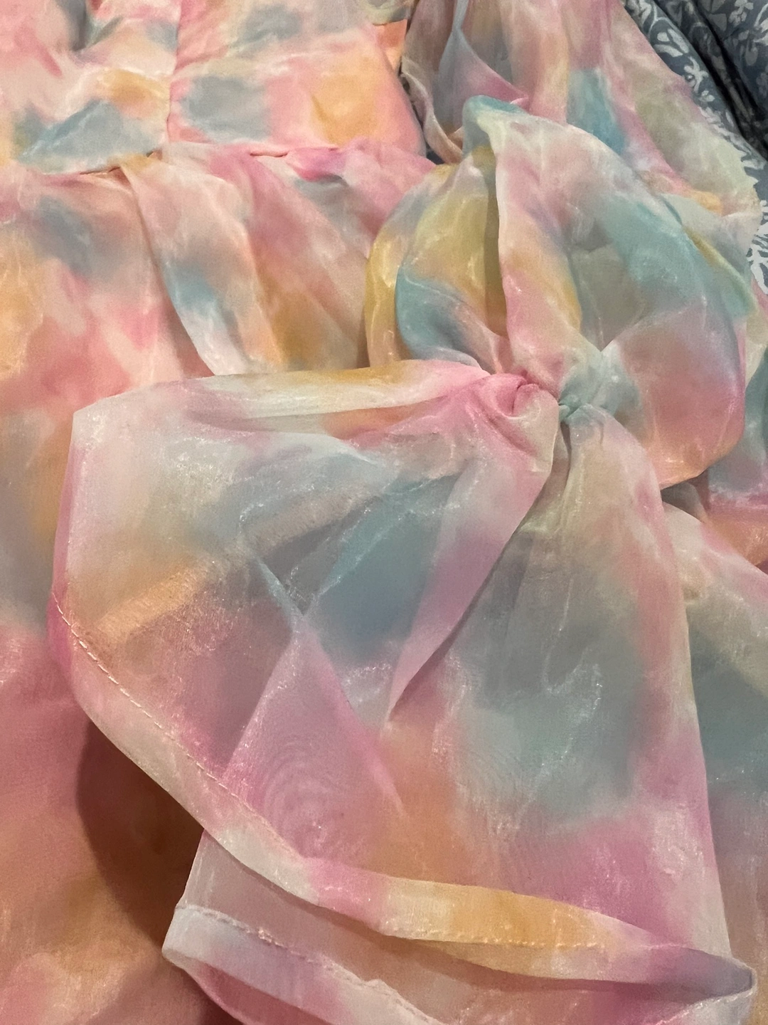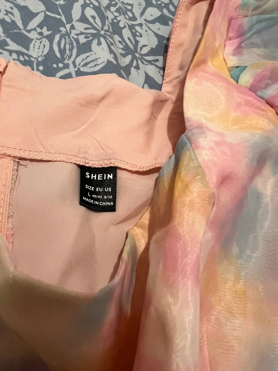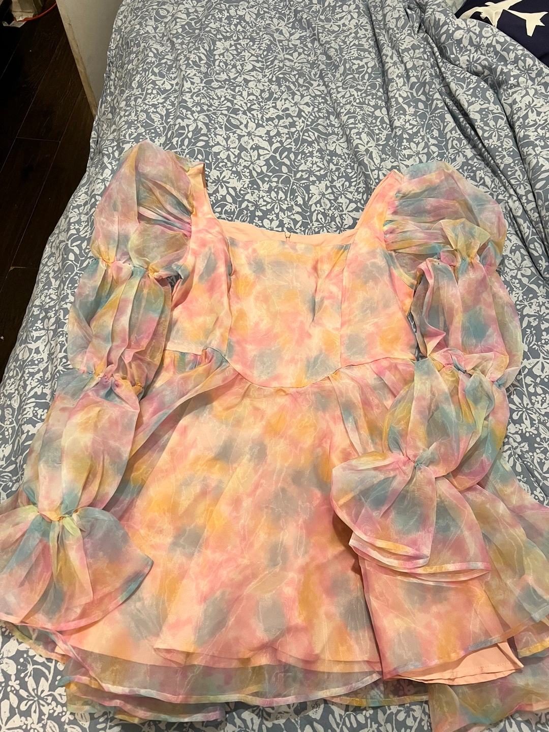 77never worn outside,just tried it Short sleeve mini dress. Tie dye print. Puff sleeves. Square neckline. size: large