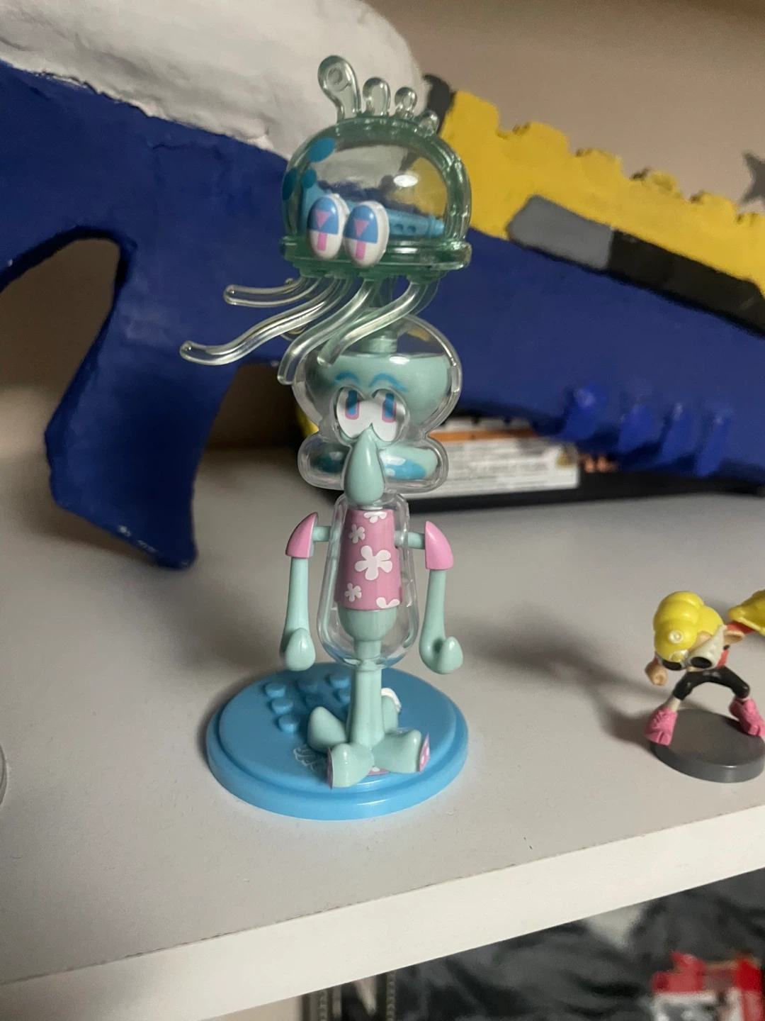 18hi, im selling some random things on my shelf alienstage Till: $15(only has box and figure no cards) squidward:$5(i can do cheaper if u buy something else with him) splatoon figures: both $5 HANDMADE splatoon sniper prop: $10 (NOT THE BEST, made it for comicon this year and has some rough spots but looks cool also im pretty sure theres dry clay stuck inside so you can hear it when you hold it 😭) HANDMADE poppy playtime vhs tape: $5 (its actually dora the explorer but i painted over it and also the poppy playtime tape thing at the top is supposed to be at the bottom 🤦♀️) im located at Lawrence and bircmount