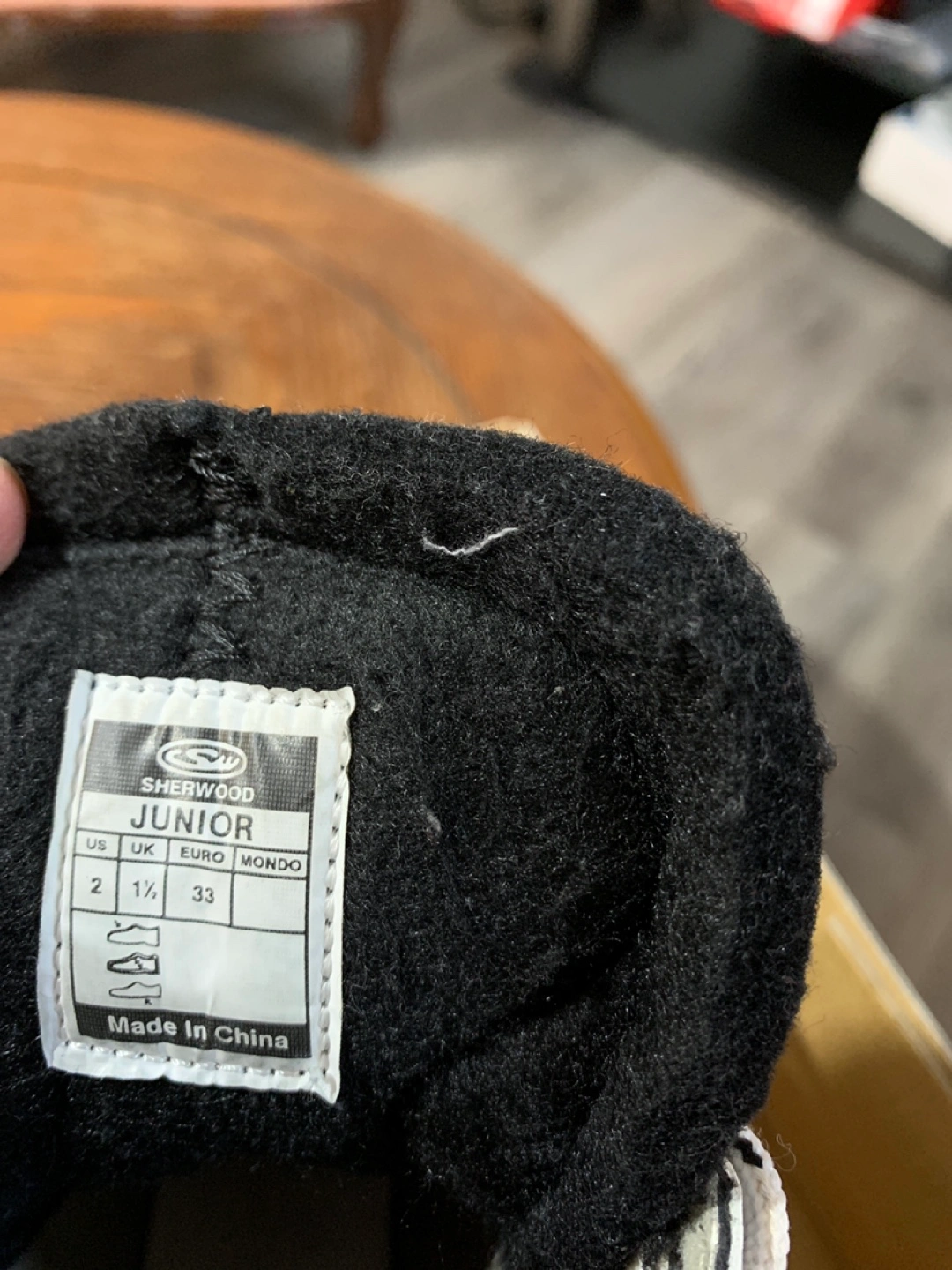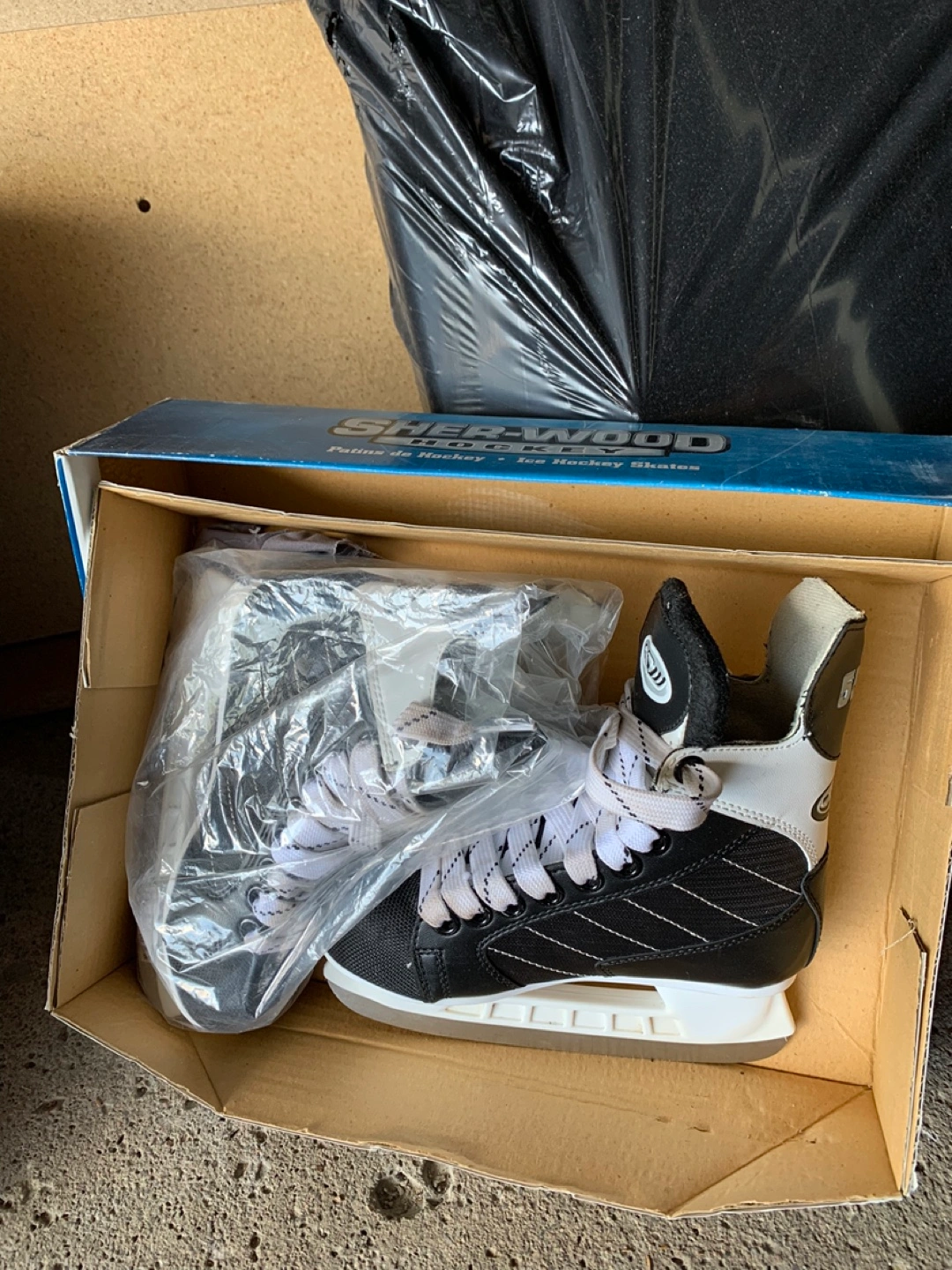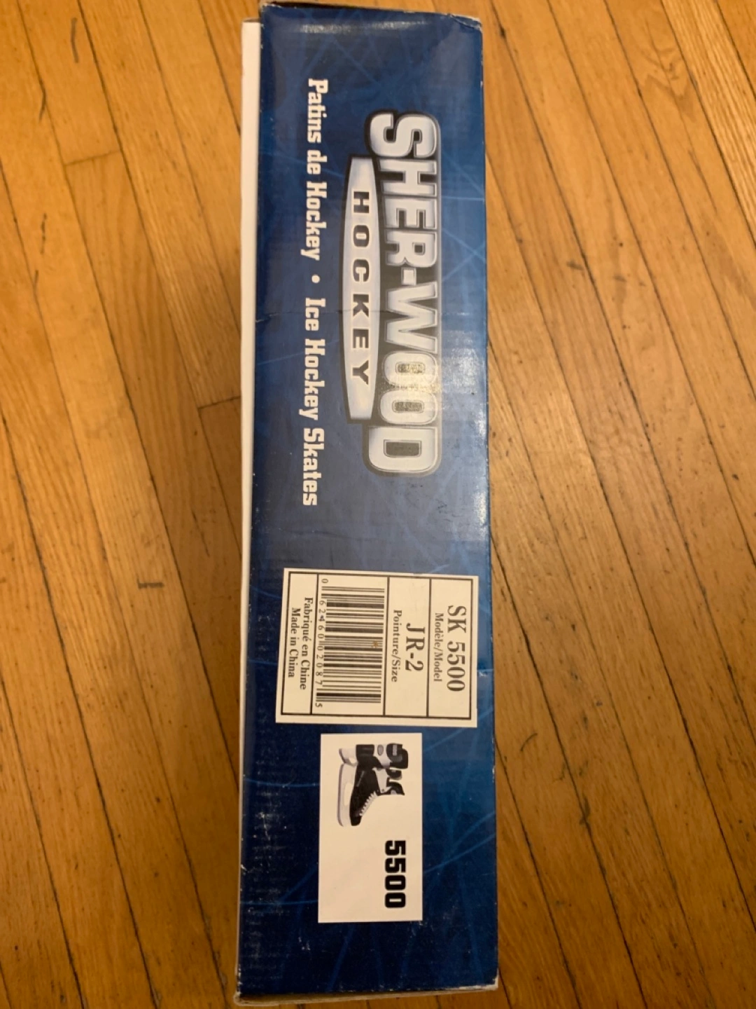 72Black and white ice hockey skates. Size Jr. 2. In original box. Blades are absolutely clean and shiny without any rust or damages Available only for pickup Final price