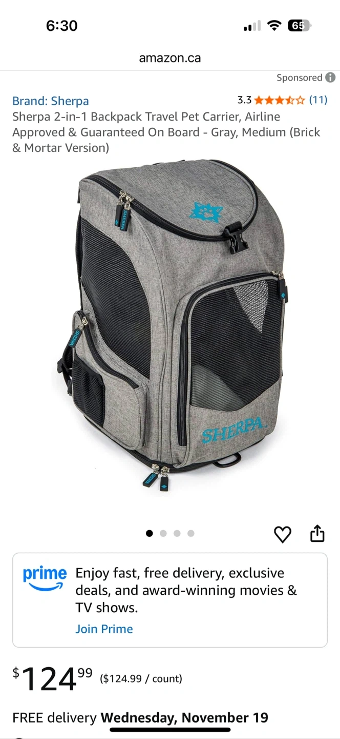 18Selling a Sherpa 2-in-1 backpack travel pet carrier in gray! It's airline approved and guaranteed on board. Originally bought for $124.99