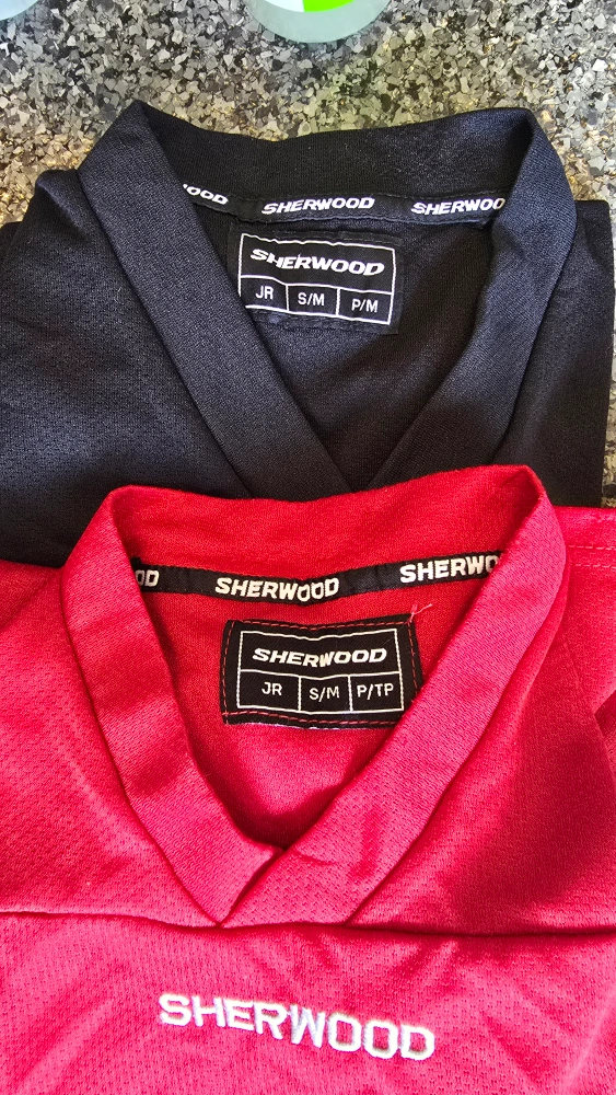 Two Sherwood junior hockey jerseys available! One is black and the other is red. Both are size jr S/M. Perfect for young hockey players! 3 pairs hockey socks $15 with set of socks or $10 each