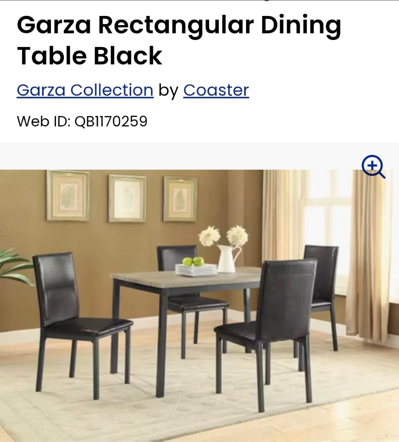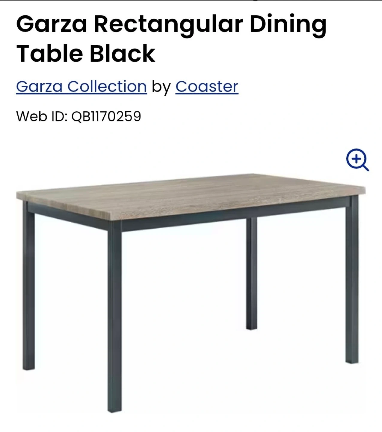 This Garza dining table offers a stylish, modern look. Its rectangular shape and black finish make it a versatile addition to any dining space. 48" L x 30" W x 30" H.