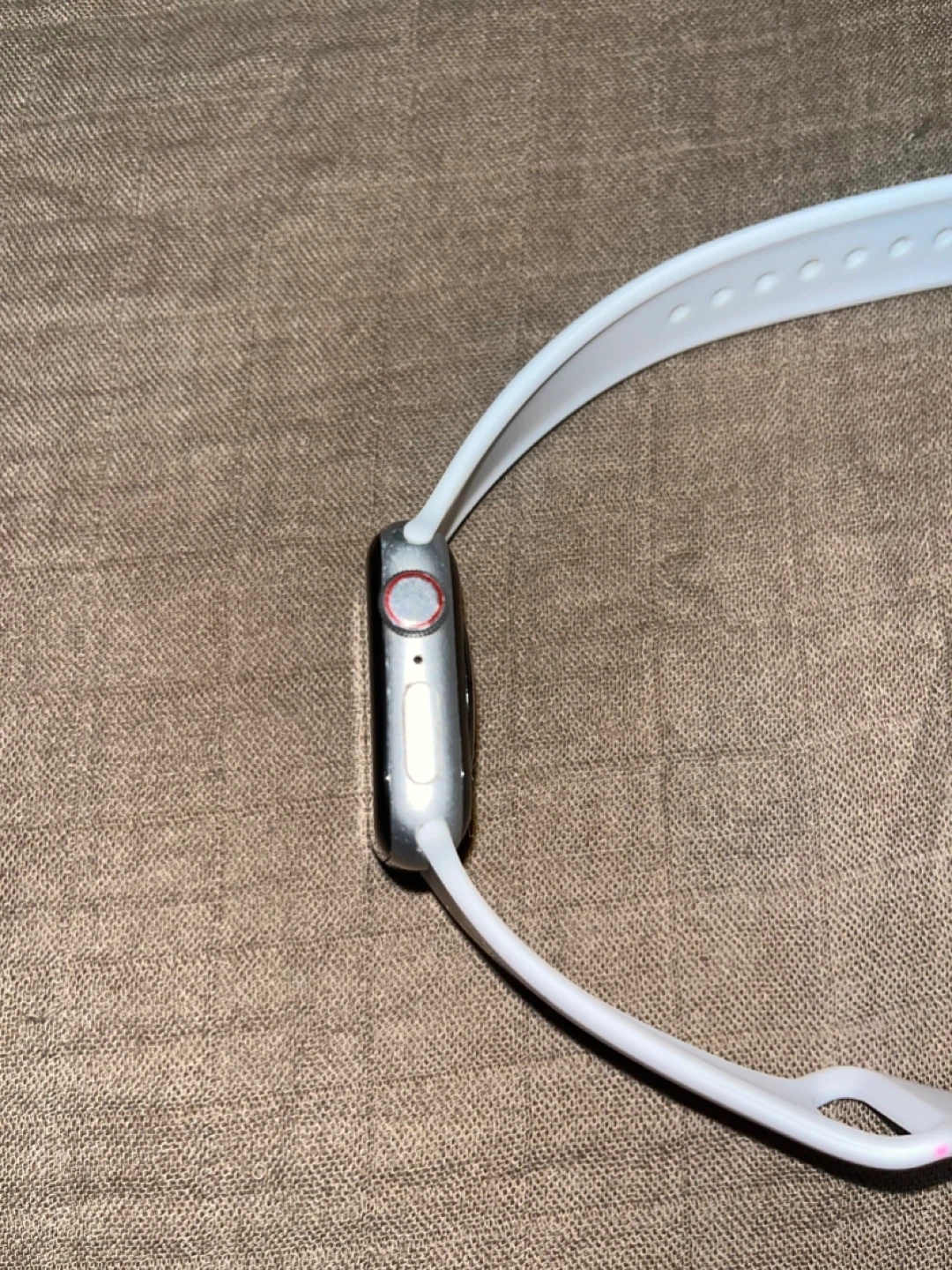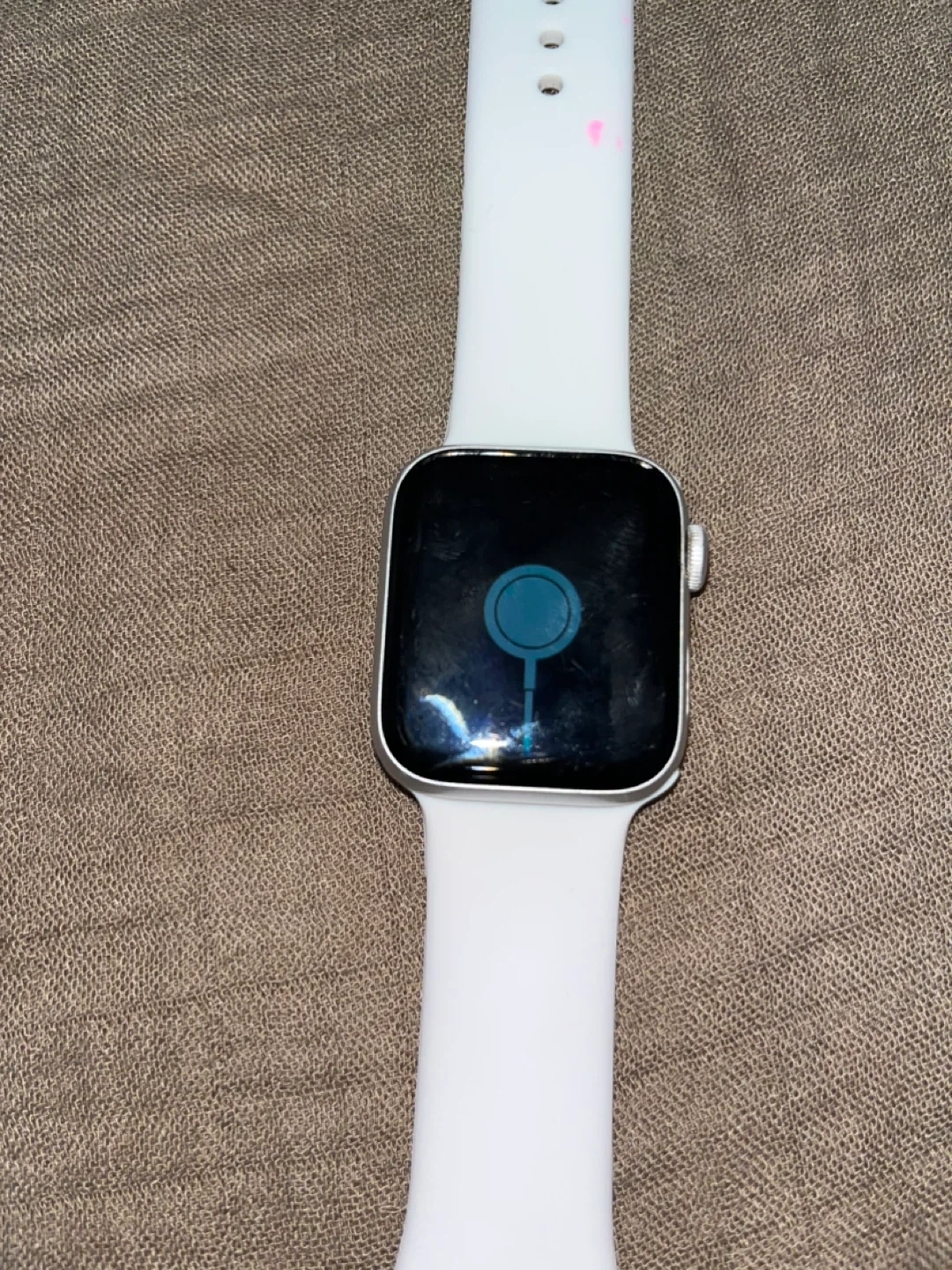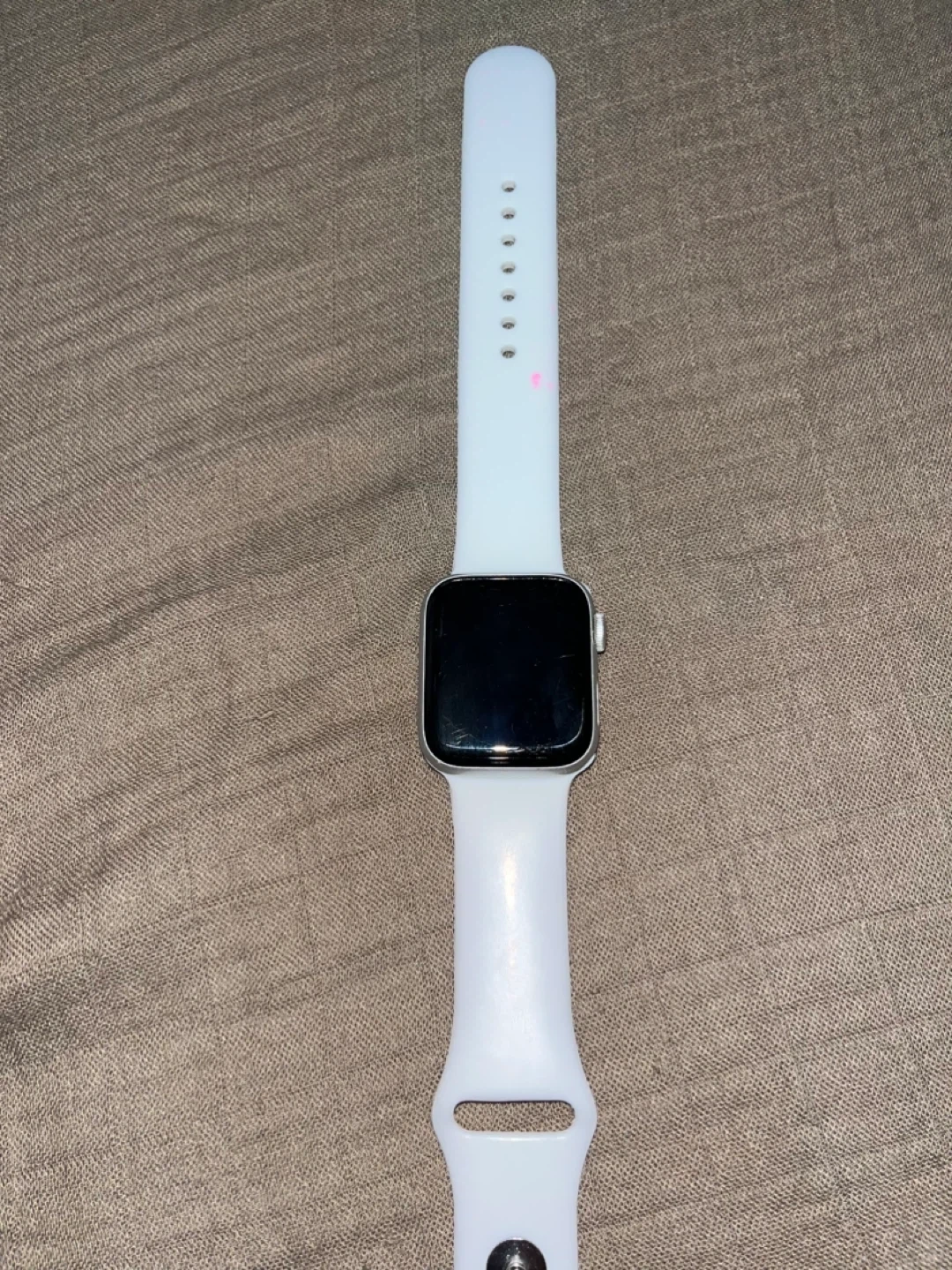 Apple Watch Series 4, 40mm model with GPS. It features an aluminum case and comes with a white band. Selling it for anyone who needs it for parts. It’s in good condition.