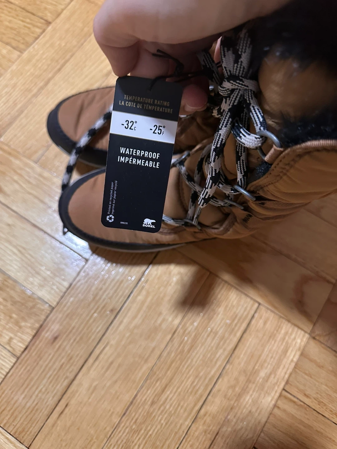 These Sorel winter boots are waterproof and insulated for cold weather. They feature a warm lining and a rugged sole for traction. Size is women's 6 UK 4 EUR 37 CM 23.