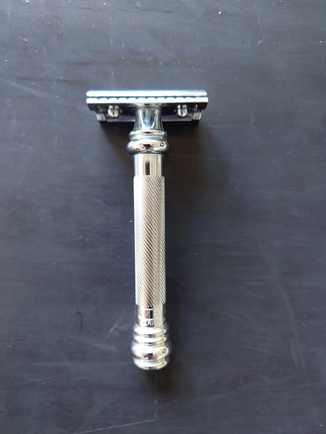 A used heavyweight safety razor in excellent and clean condition. The plating has zero wear and the threads are undamaged. Safety razors are significantly less expensive and give a better shaving experience than cartridge type shavers such as Gillette, Schick, and Harry's. The reason for selling is I own a different safety razor I like more for my needs and personal preferences.