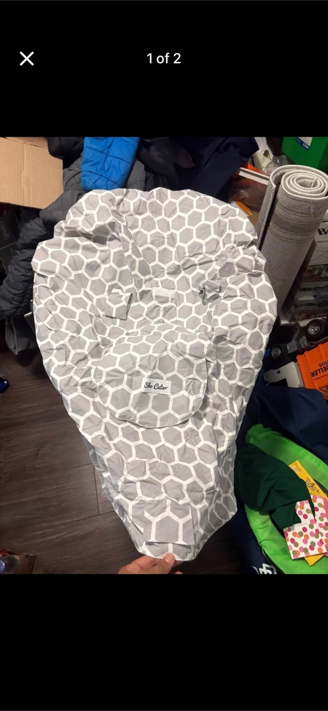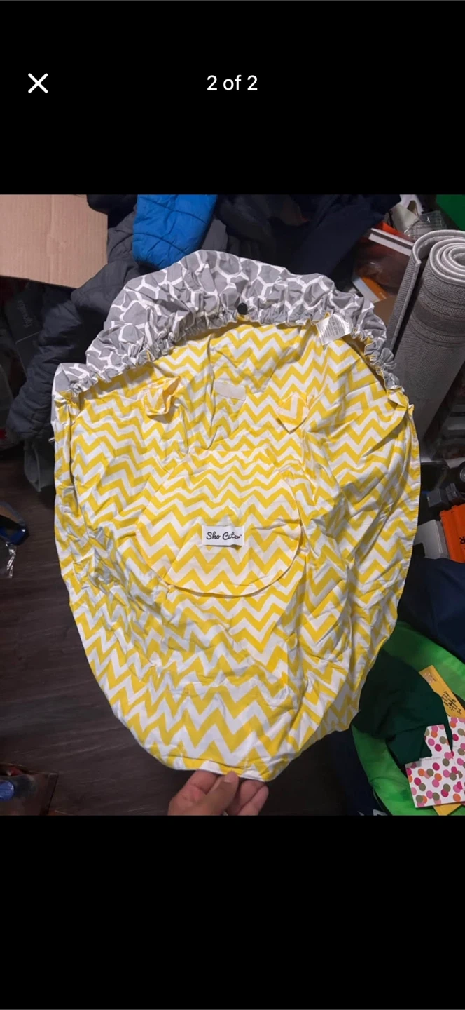 Keep your little one cozy and protected with this Sho Cute baby carrier cover! It features a cute grey and white geometric pattern on one side and a bright yellow and white chevron pattern on the other. Perfect for keeping baby warm and shielded from the elements while you're on the go
