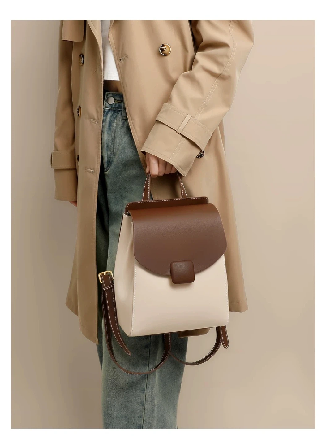 I'm selling a brand new Caduni Kaiser backpack! It's a stylish white and brown colour, made with cow split leather and synthetic leather.