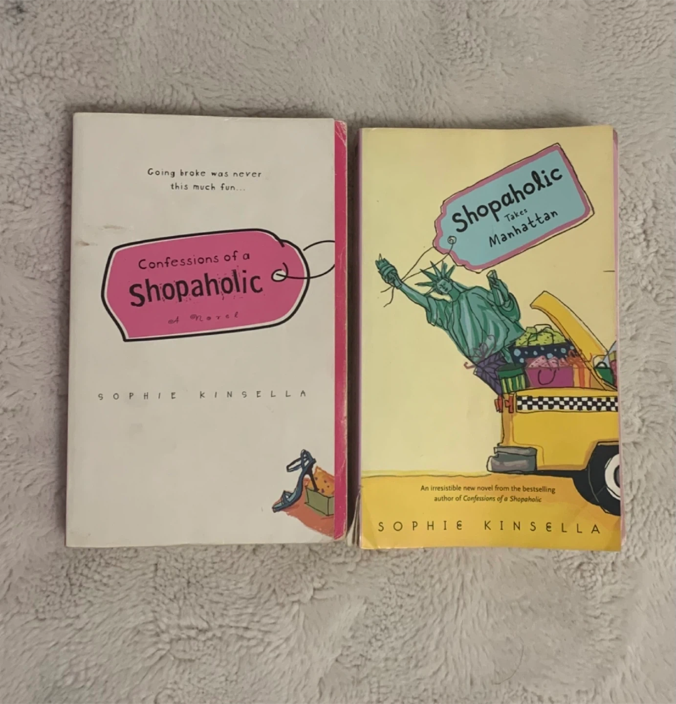 Selling two books from the Shopaholic series by Sophie Kinsella: Confessions of a Shopaholic and Shopaholic Takes Manhattan. Both are great reads!