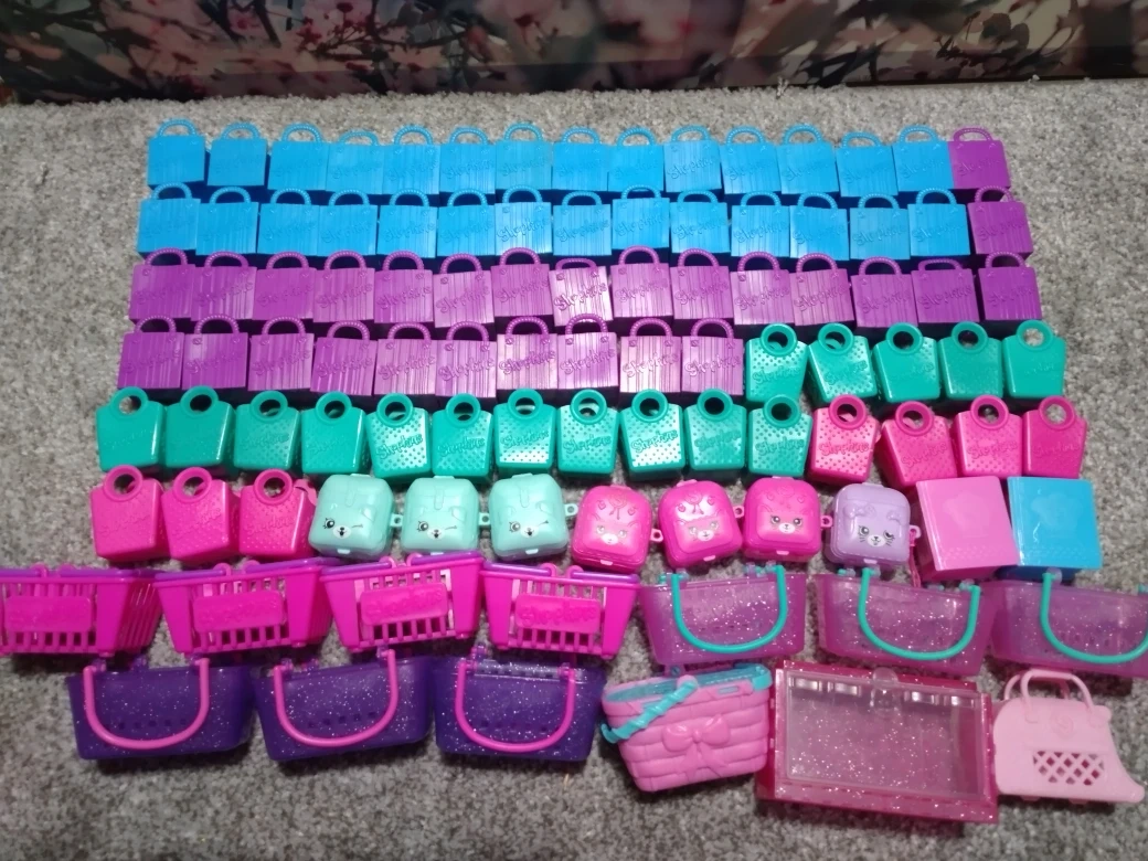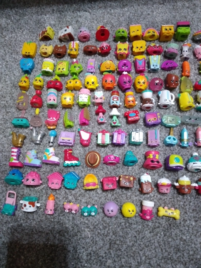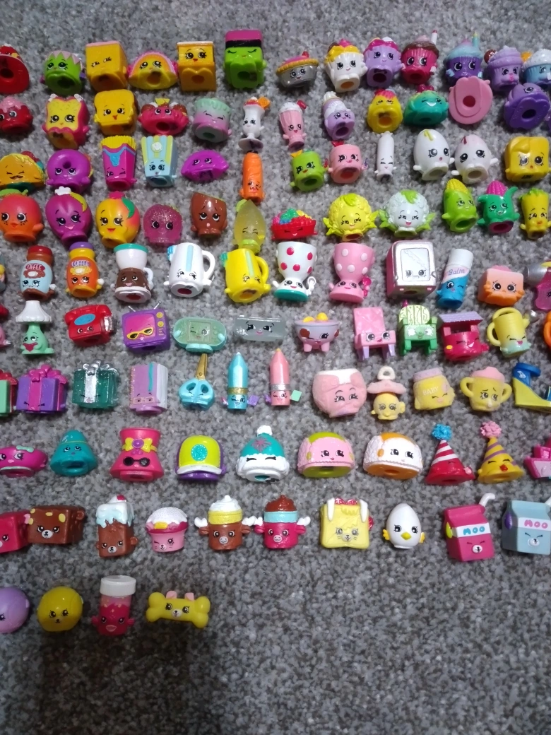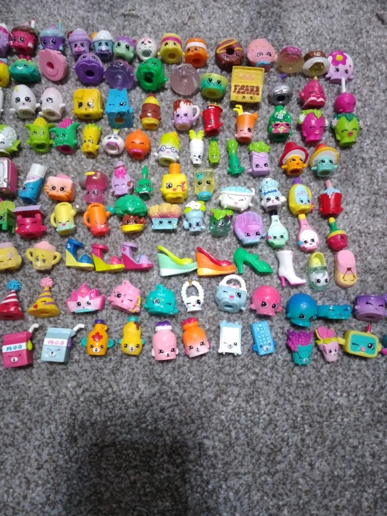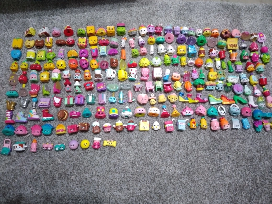 10Comes with carrying case, display case, baskets and bags and over 230 Shopkins. All the Shopkins are in good condition but some have sharpie on the bottom. My items are NOT from a pet free home. If you have allergies, please be careful. Crossposted