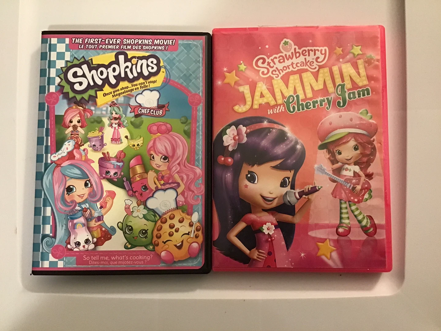 Selling two kids' DVDs: The First-Ever Shopkins Movie and Strawberry Shortcake Jammin' with Cherry Jam! Both DVDs are in great shape and ready for some fun viewing 😊 $5 for both
