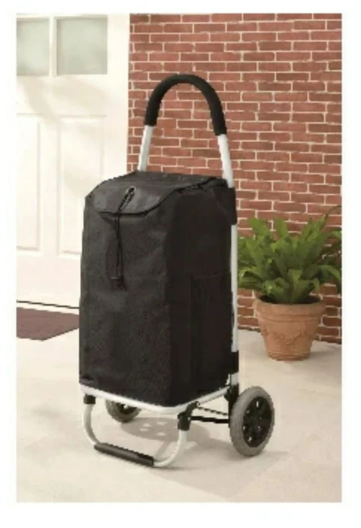 MAINSTAYS Deluxe Shopping Cart Meet Your Various Needs: Mainstays deluxe shopping cart comes with a polyester bag and aluminum frame for durability, it can be a shopping cart, grocery cart. Remove the bag and it becomes a lightweight trolley and helps you transport groceries with the least effort. Pack All Your Groceries: The capacity of the detachable bag is up to 50L. Elastic band and velcro protecting all your grocery from getting loose, without worrying about the bag falling off the trolley cart. The back pocket with zip is suitable for storing small items such as change and keys. Ideal for Food Storage: The insulated bag of this shopping cart is made of the high-quality polyester. Obviously, it is a strong helper when you go to a supermarket, farmers markets, beach, picnics, camping, boating. Easy to Use and Store: You can use the cart just by opening the support frame. The height of the folded cart is 39 inches, you can store it in the trunk of your car, under the sofa, in the closet, or garage for space-saving. Overall loading weight is 45lbs/20.45kg, do not overload for long term use. About this item Brand: Mainstays Assembled size: 18in.WX15.35in.DX39in.H(45.72cmx39cmx99.06cm) Material: Aluminum, PP, Foam, Metal Item weight: 4.62lbs/2.1KG Easy assemble and can be folded when not in use. • Size: Regular sold at $46 plus tax