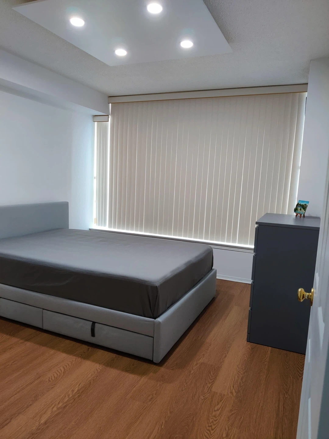 15Fully furnished private bedroom with private bathroom and shared kitchen available for rent in a 2 bed 2 bath condo from 1st December in Mississauga City Center Near Square One. Available on a month to month basis to be shared with a married couple. Its only single occupancy so please dont msg if you are a couple! Unit includes: 1. Fully furnished bedroom seen in pictures (Bed + Mattress, chest and wardrobe) 2. Spacious living area 3. Full private washroom 4. In-suite laundry 5. Kitchen has appliances (Toaster, Coffee Maker, Electric Kettle, microwave, fridge, food processor) $1300 rent (includes all utilities + wifi) In building amenities- Gym, indoor pool, tennis court, squash court, table tennis table. Great Location in mississauga. Walking distance to square one. no pets allowed. For more details please contact me!