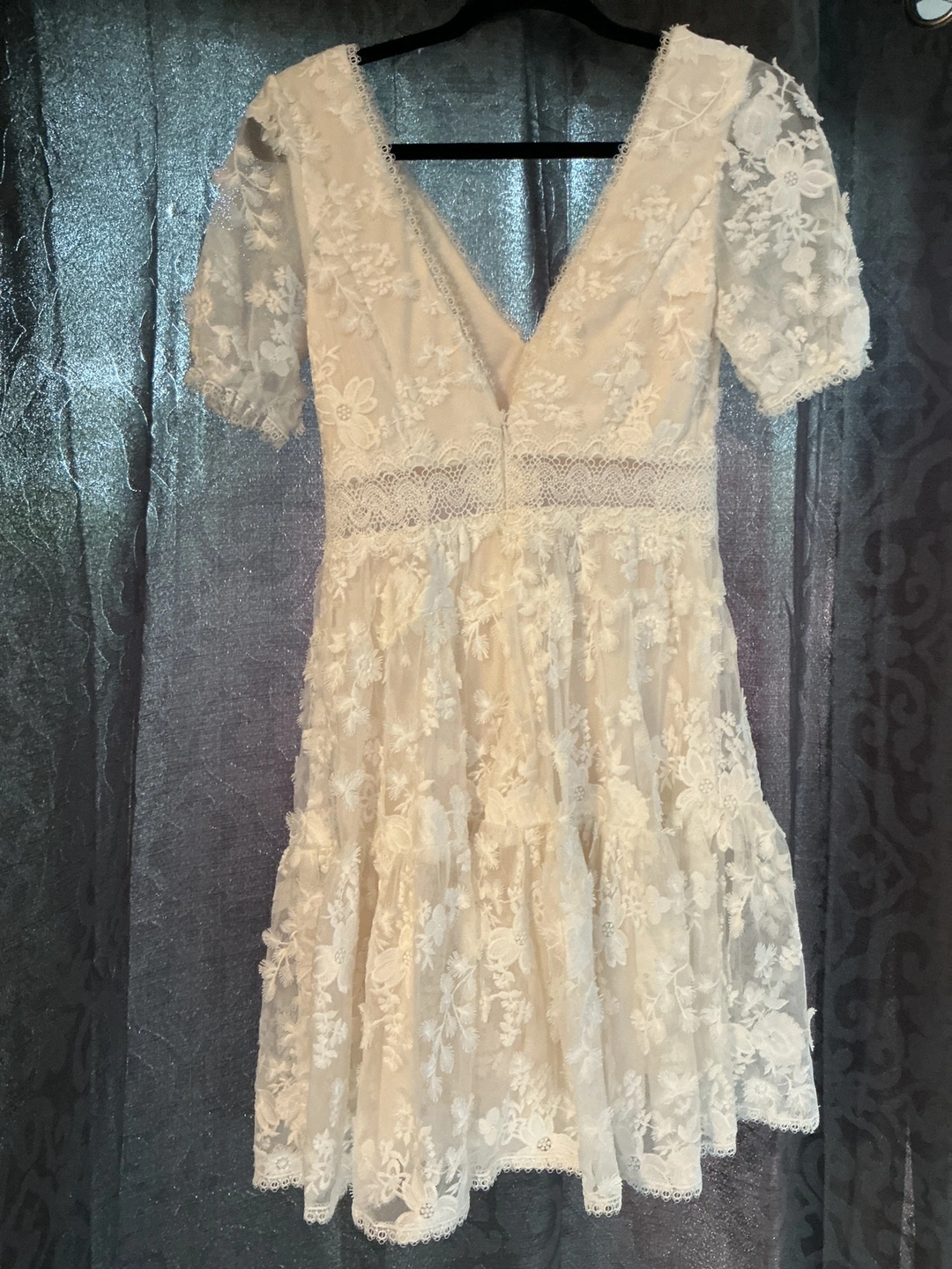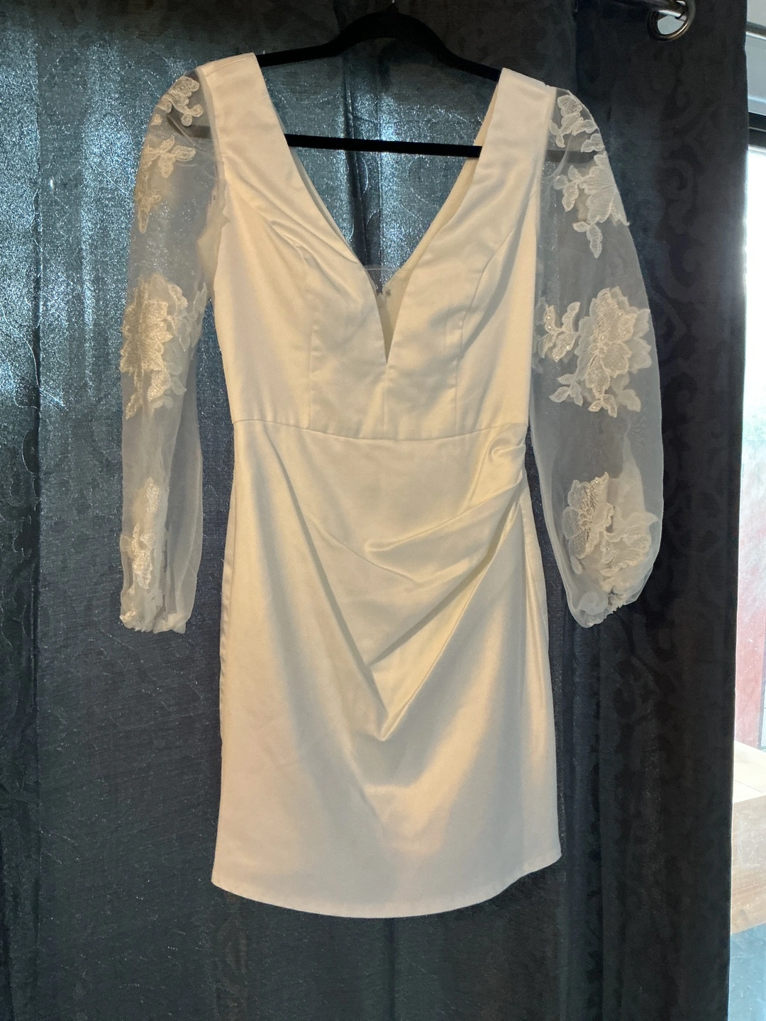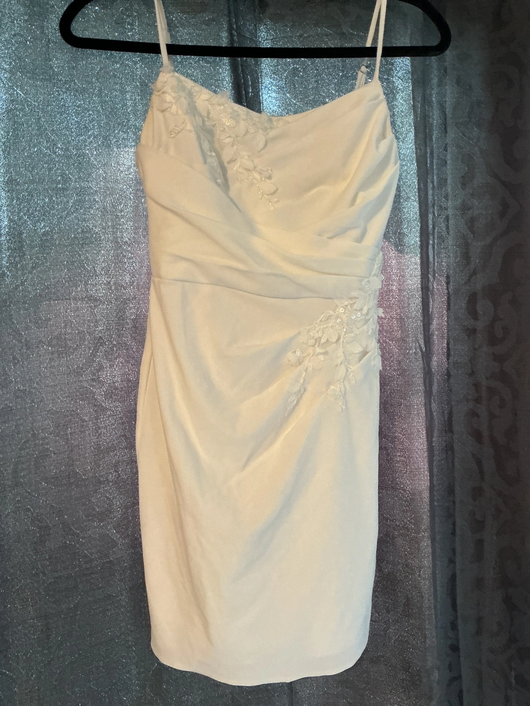 Short white dresses. First two ones have some small arm staining from longer session wear and the satin has a small tip in the arm but is easily fixable by seamstress. The rest are like-new! :)
