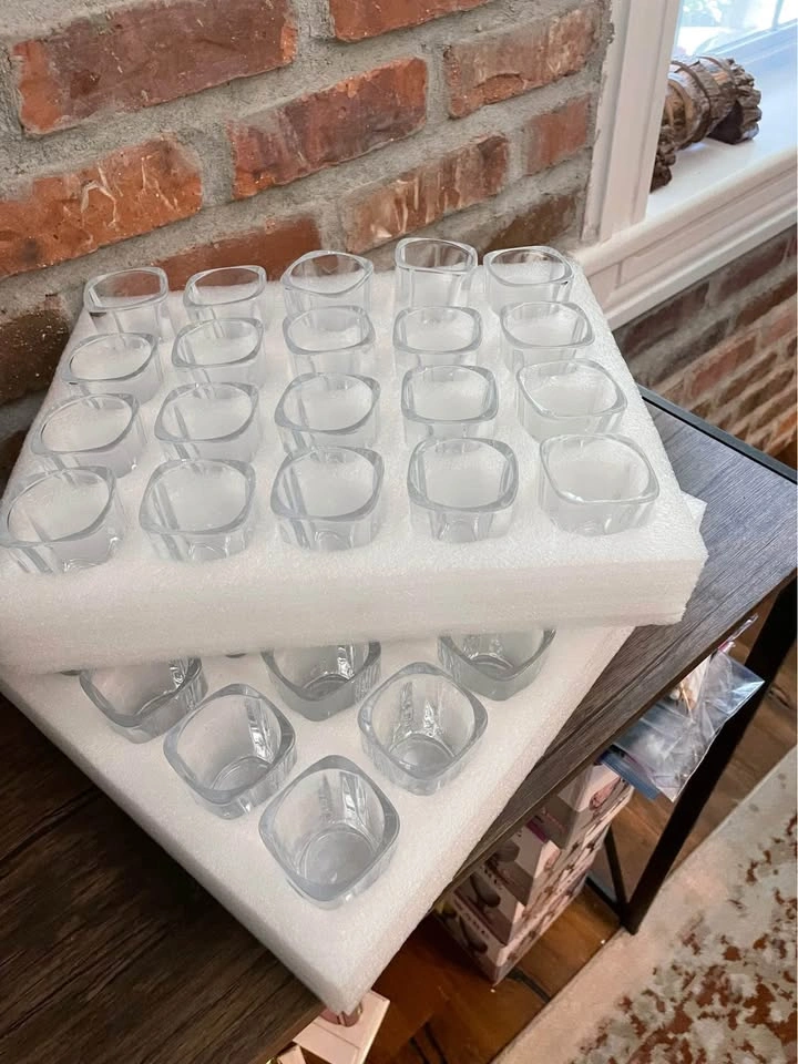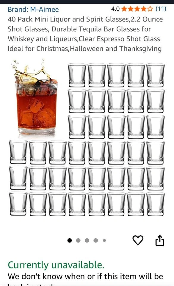 Bought on Amazon $45, see pic, they are no longer available. Used once for a Bridal Shower. There are 40 glasses of good quality.