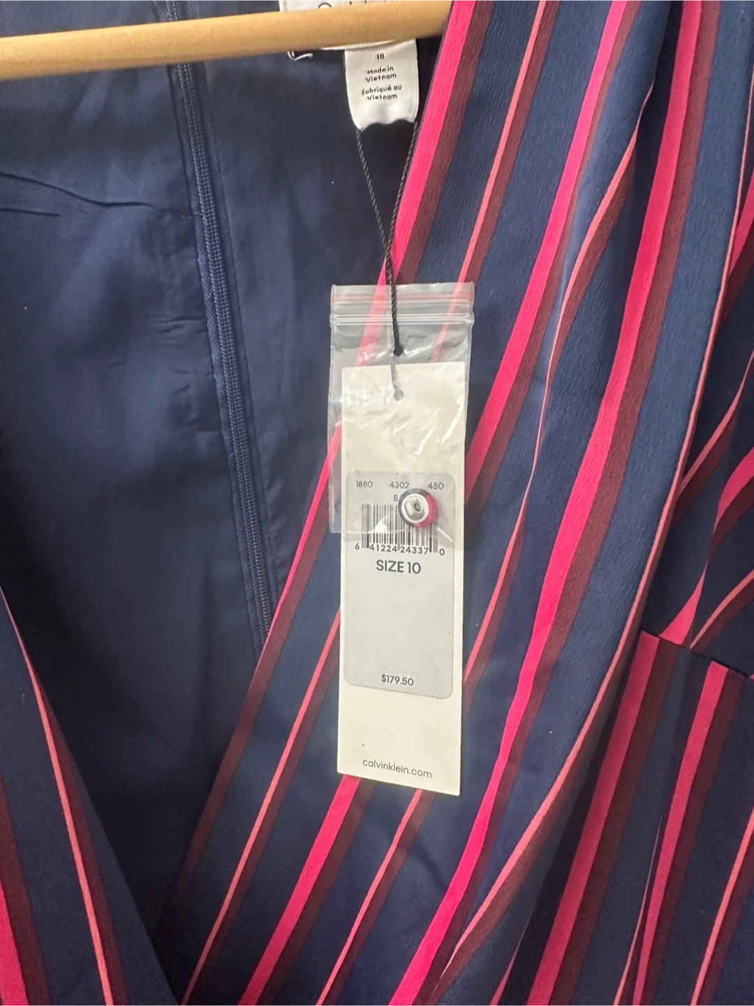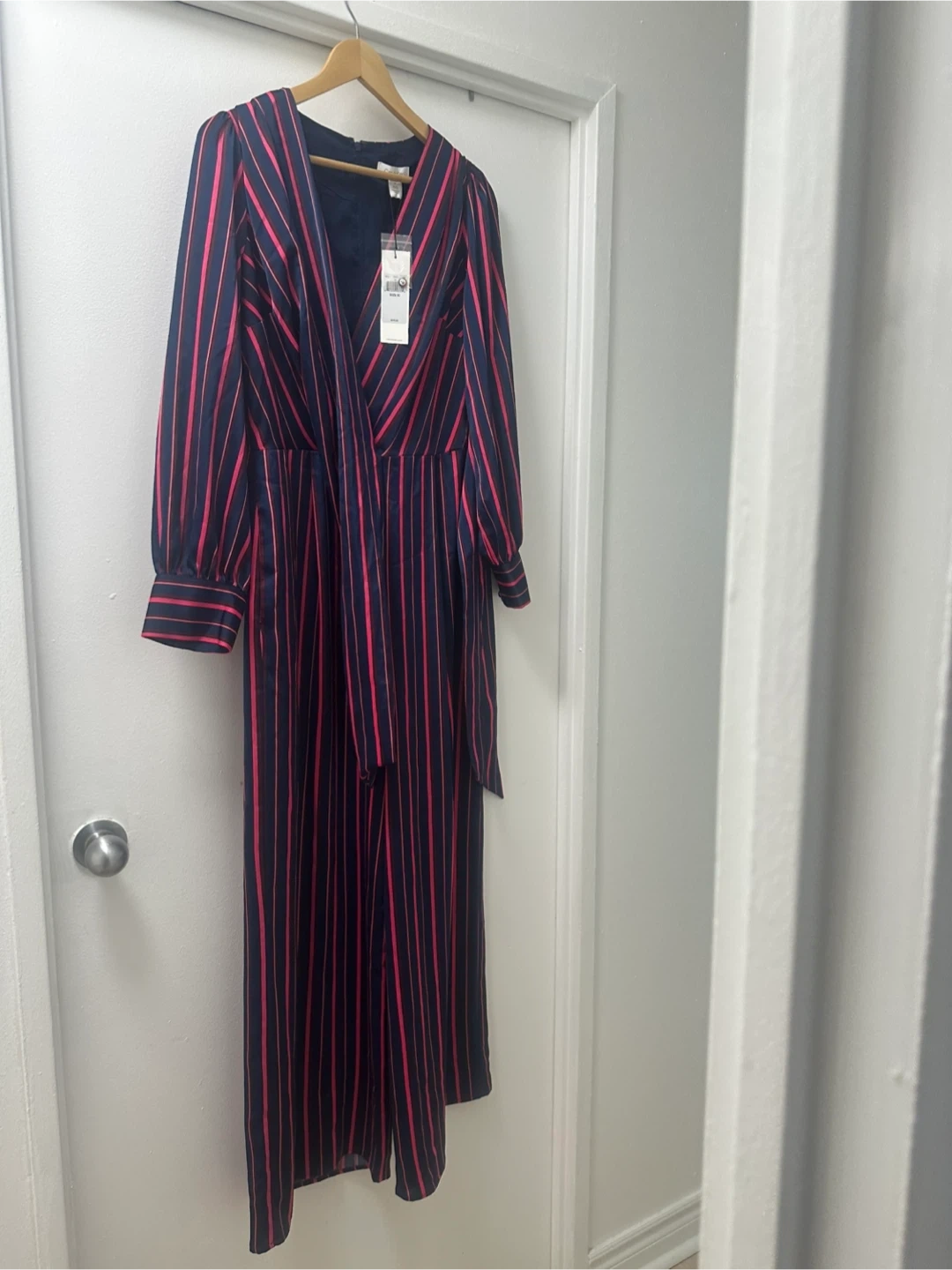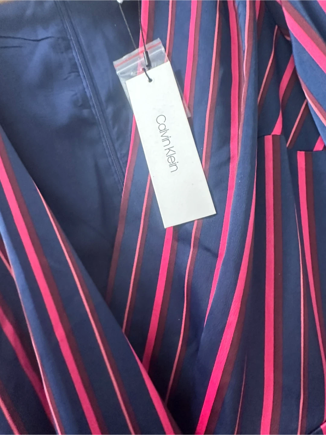 Selling a brand new Calvin Klein jumpsuit with tags still attached! It's a size 10 and features a stylish striped pattern. The original price was $179.50