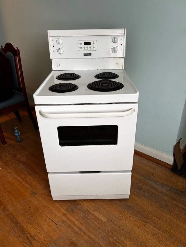 Selling a Frigidaire stove with coil top elements and a storage drawer. This is a used appliance, but it works great for all your cooking needs! The oven is ready to bake up your next culinary masterpiece! It's patiently waiting for a new home where it can shine and sizzle once again. Size: 24” wide x 26” deep. Sold as is. Buyer must be able to remove from house and haul away on your own. Pickup in East York. Cash only.