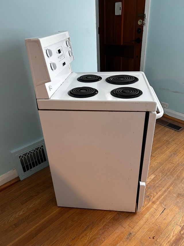 Selling a Frigidaire stove with coil top elements and a storage drawer. This is a used appliance, but it works great for all your cooking needs! The oven is ready to bake up your next culinary masterpiece! It's patiently waiting for a new home where it can shine and sizzle once again. Size: 24” wide x 26” deep. Sold as is. Buyer must be able to remove from house and haul away on your own. Pickup in East York. Cash only.